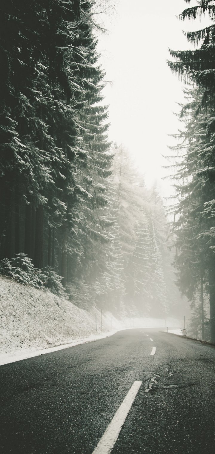Обои: дорога, снег, метель - 720x1520
