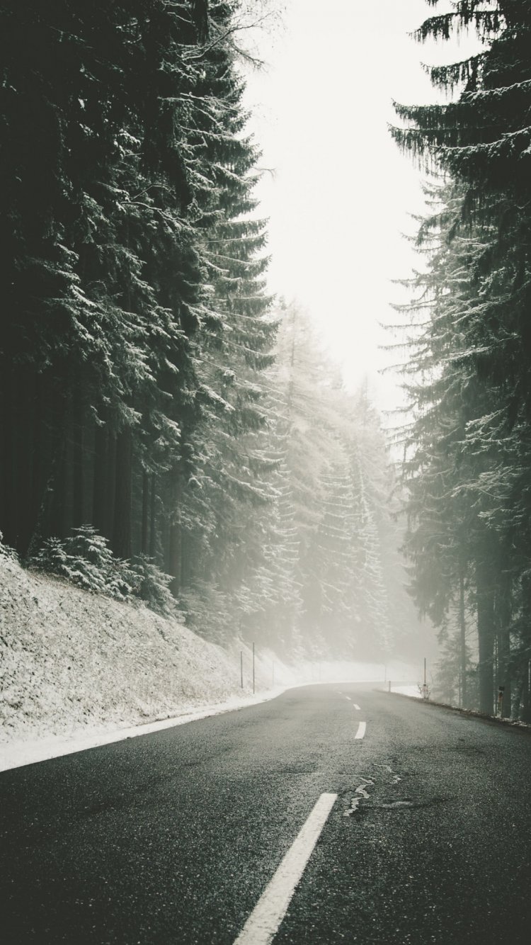 Обои: дорога, снег, метель - 750x1334