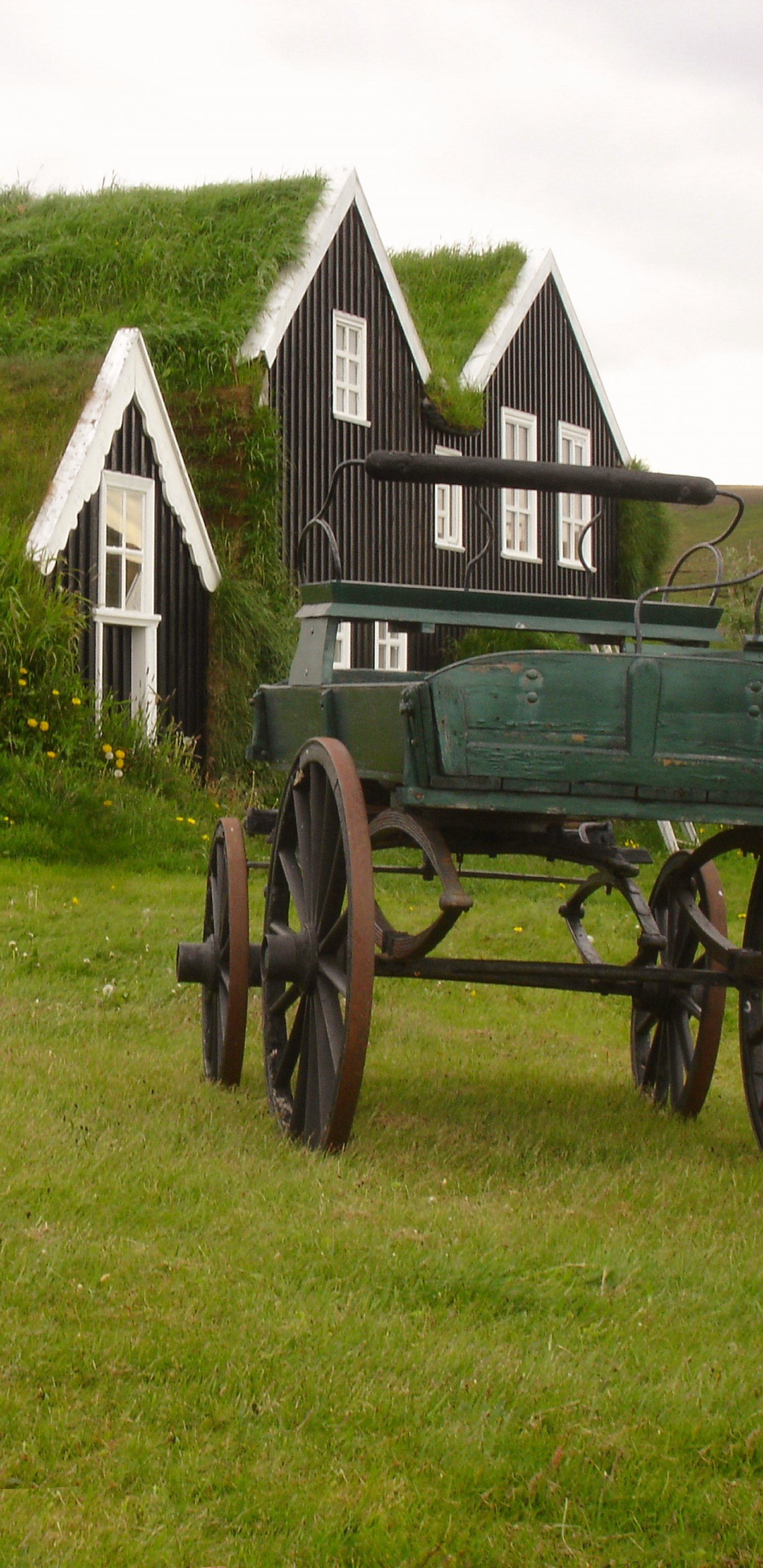 Обои: Исландия, зеленый, дом, телега - 1440x2960