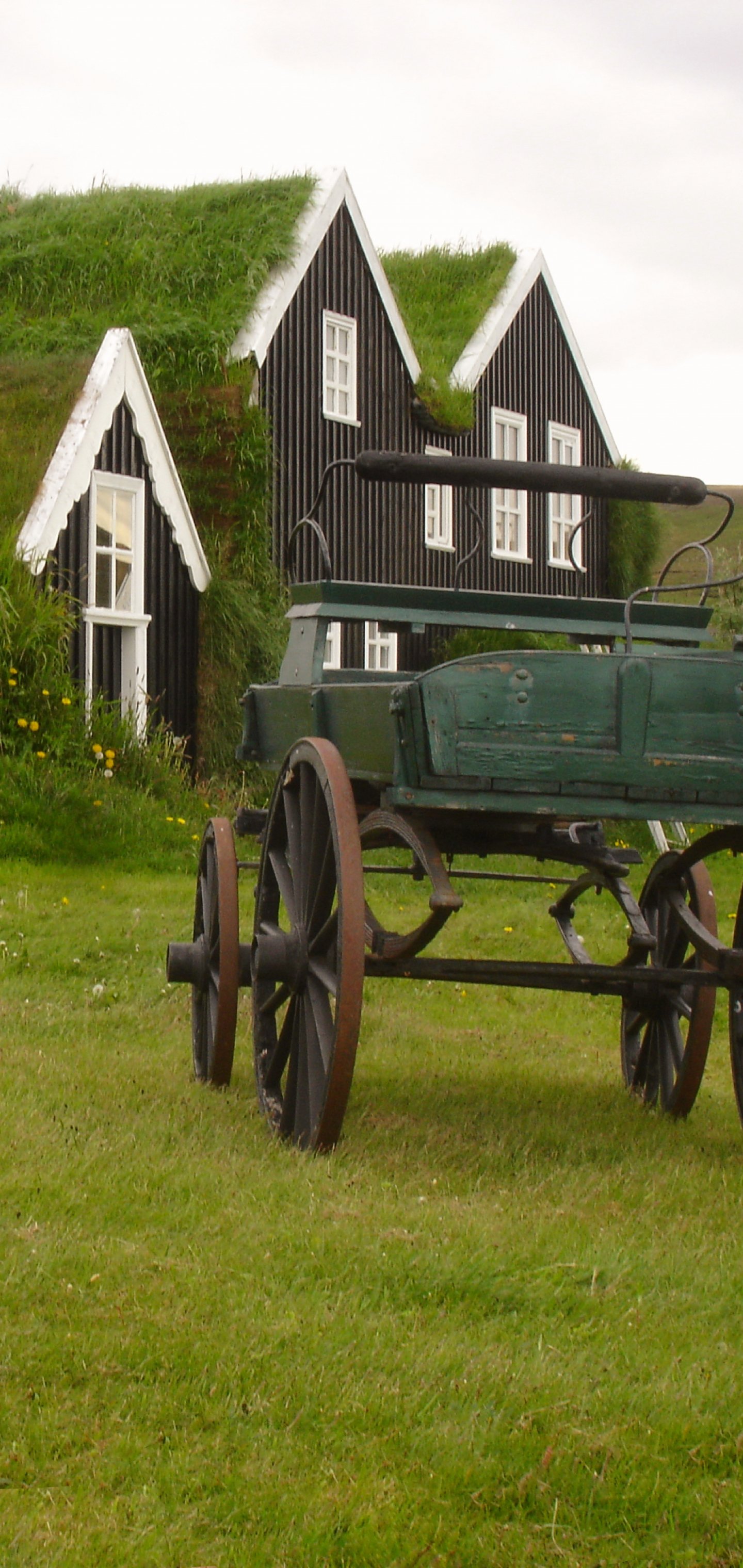 Обои: Исландия, зеленый, дом, телега - 1440x3040