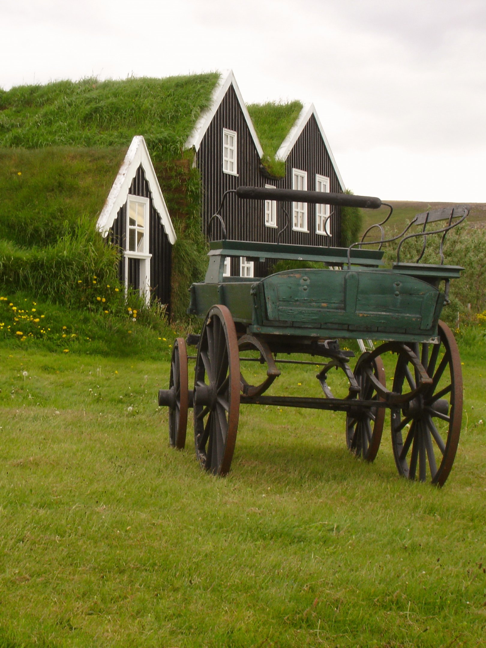 Обои: Исландия, зеленый, дом, телега - 1620x2160