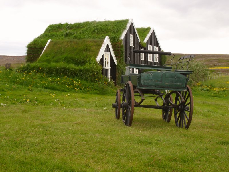 Обои: Исландия, зеленый, дом, телега - 800x600
