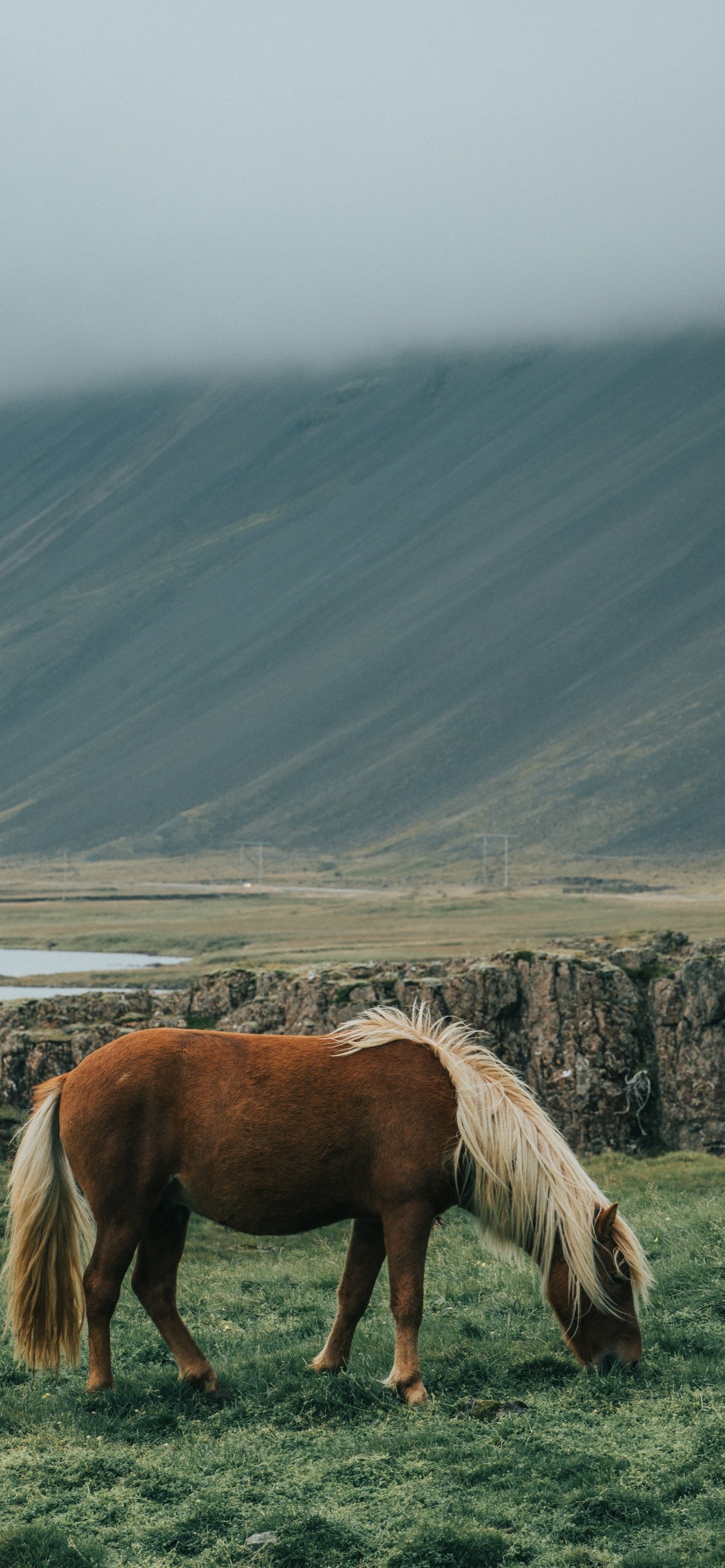 Обои: Исландия, лошадь, поле - 1242x2688
