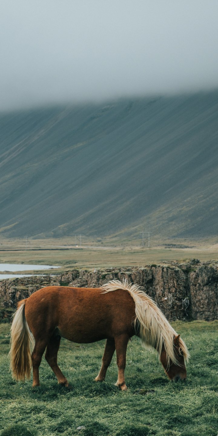 Обои: Исландия, лошадь, поле - 720x1440