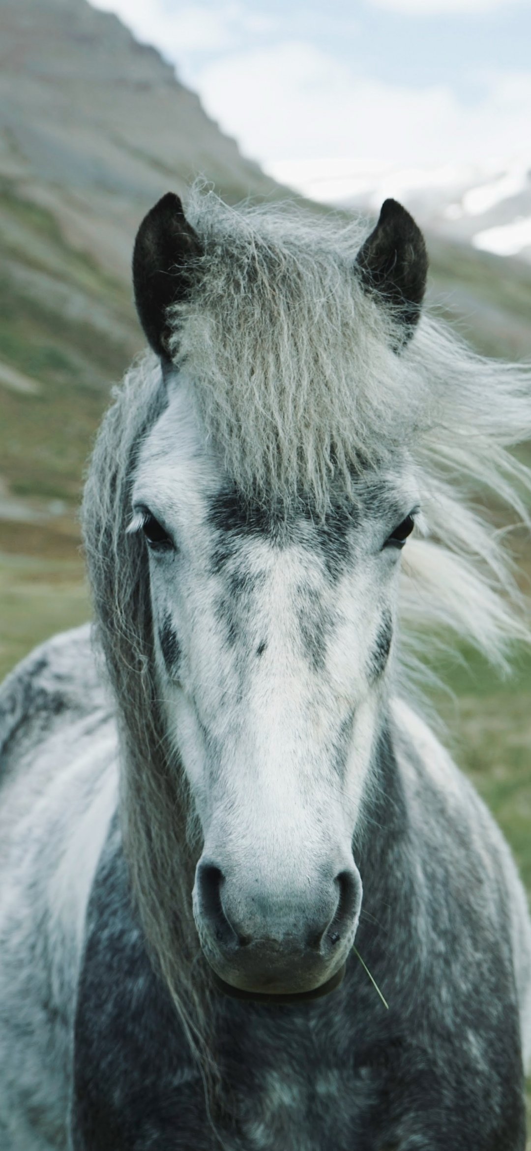 Обои: лошадь, горы, пастбище - 1080x2340