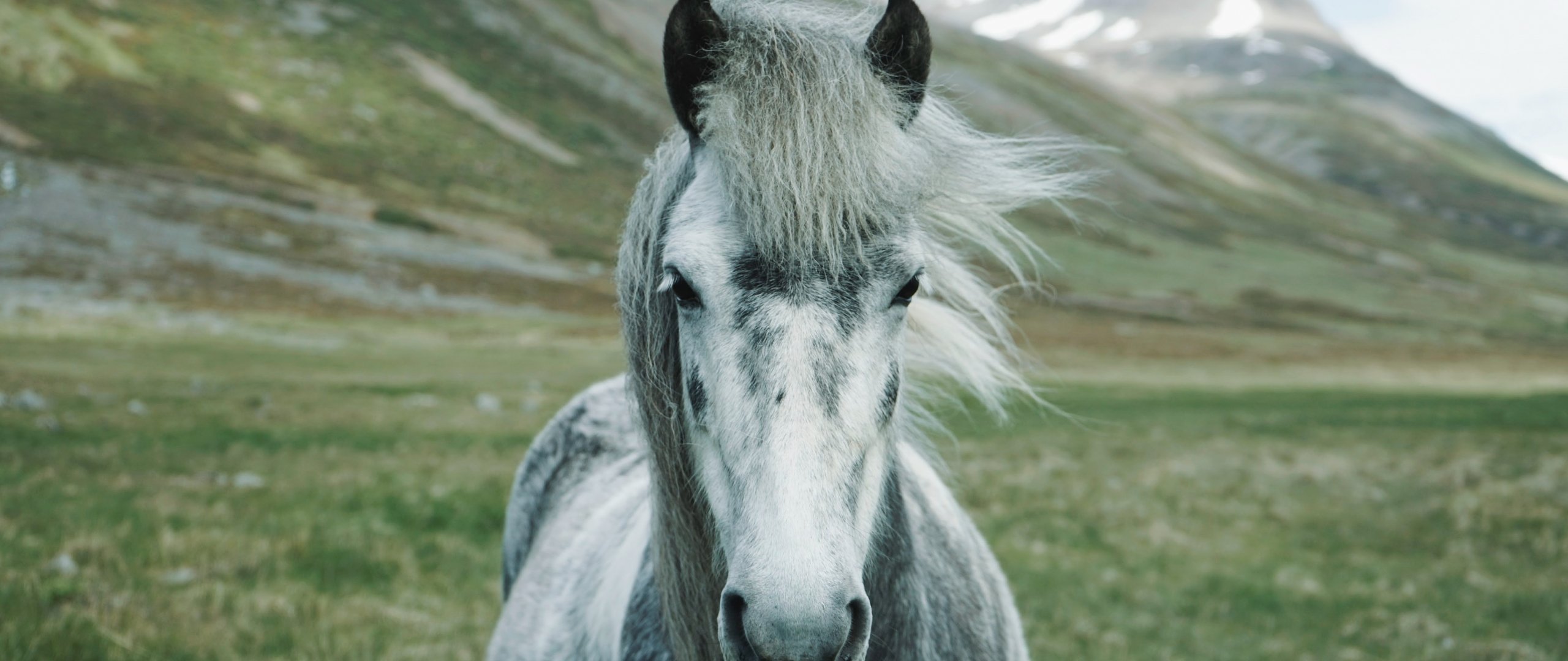 Обои: лошадь, горы, пастбище - 2560x1080