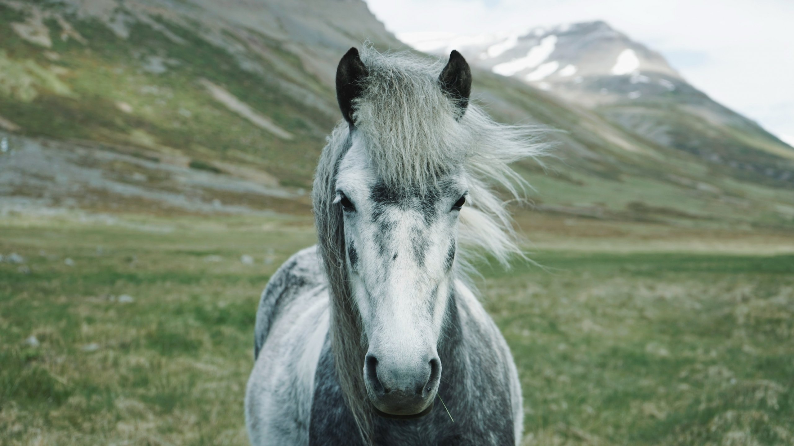 Обои: лошадь, горы, пастбище - 2560x1440