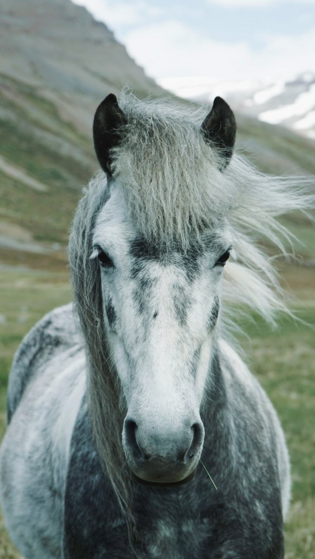 Обои: лошадь, горы, пастбище - 640x1136