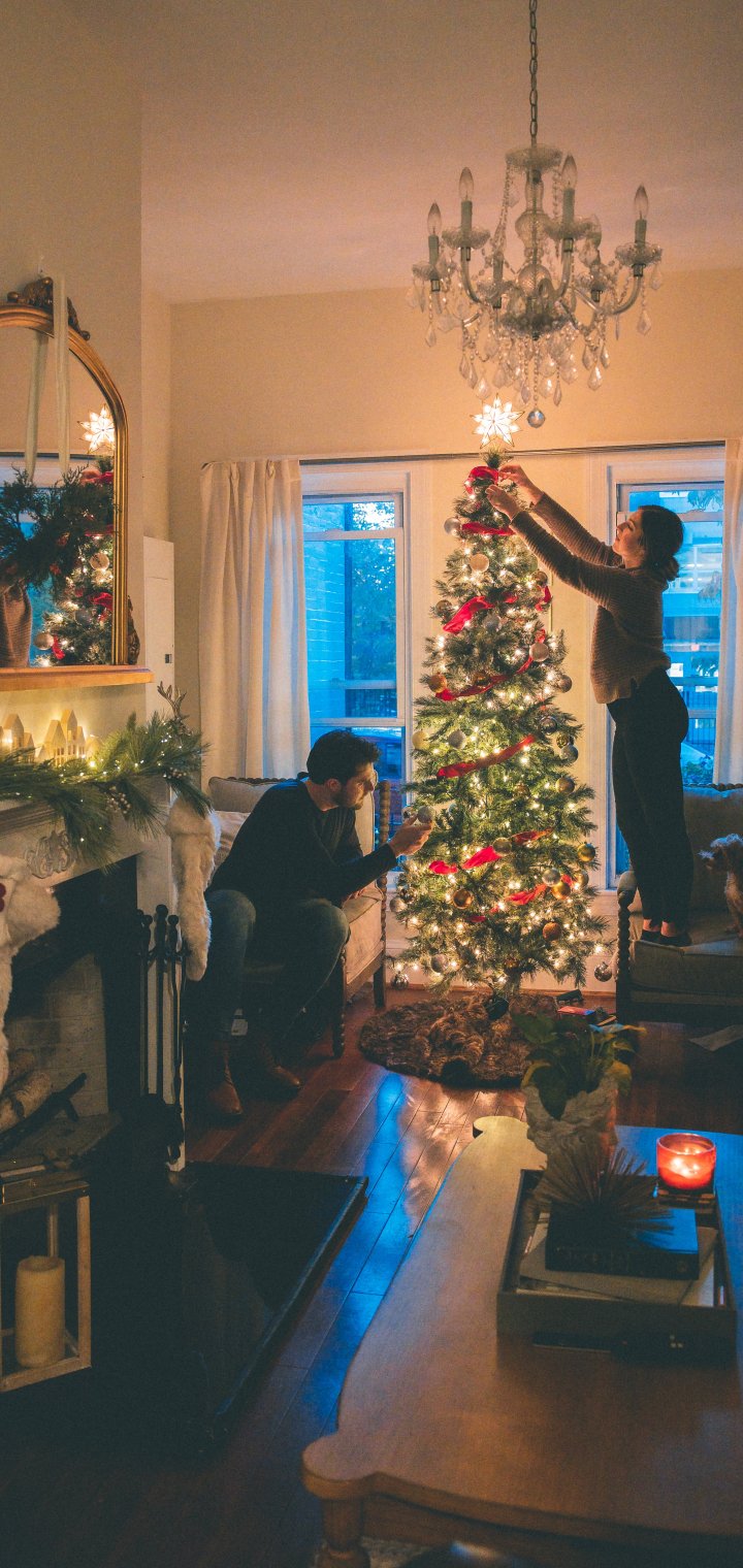 Обои: украшение, пара, елка - 720x1520