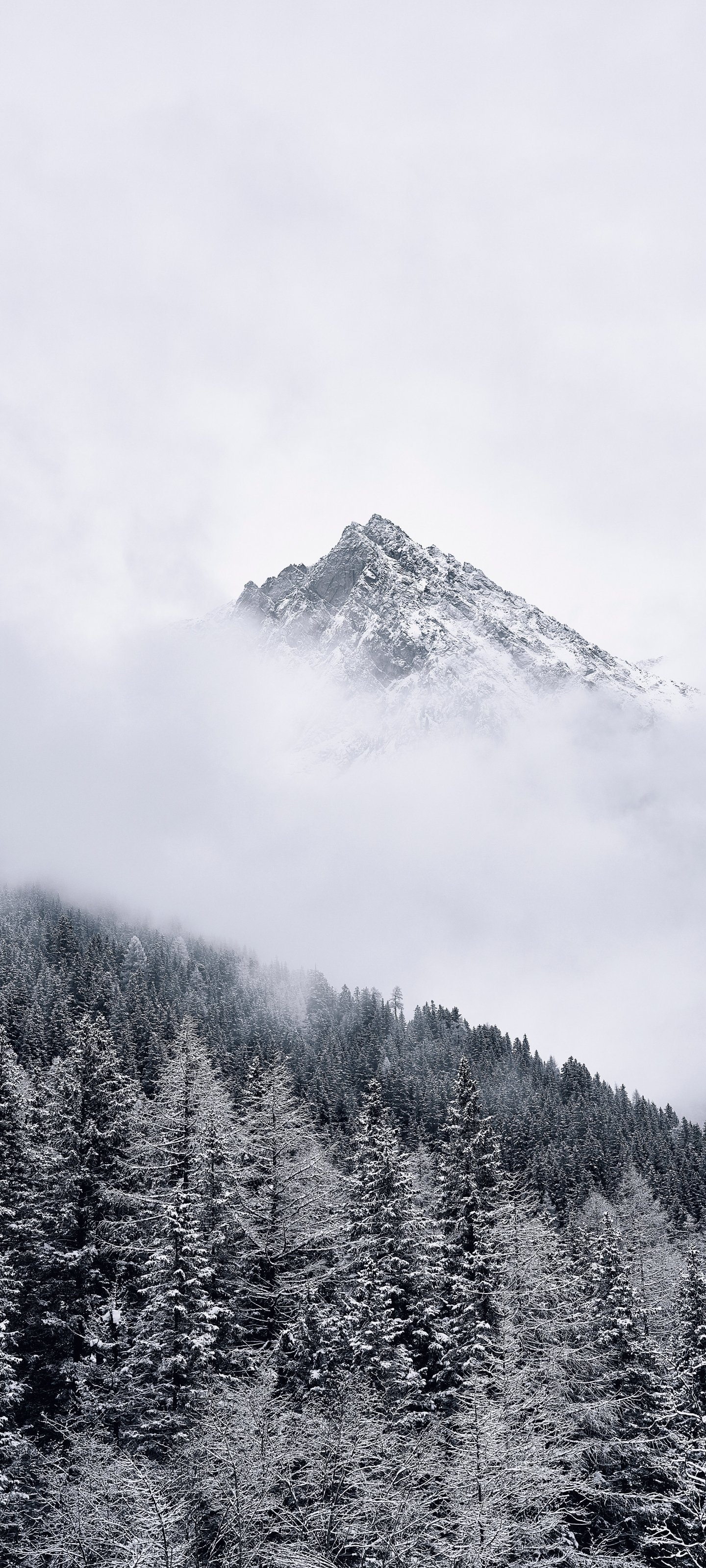 Обои: лес, горы, облака - 1440x3200
