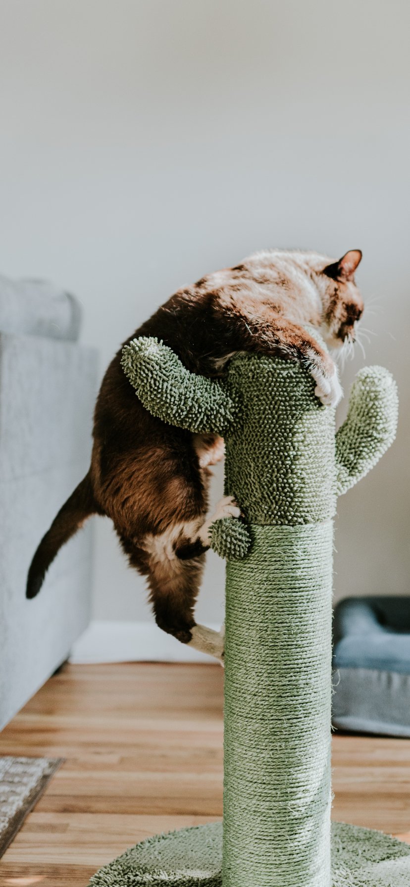 Обои: когтеточка, кот, взбираться - 828x1792