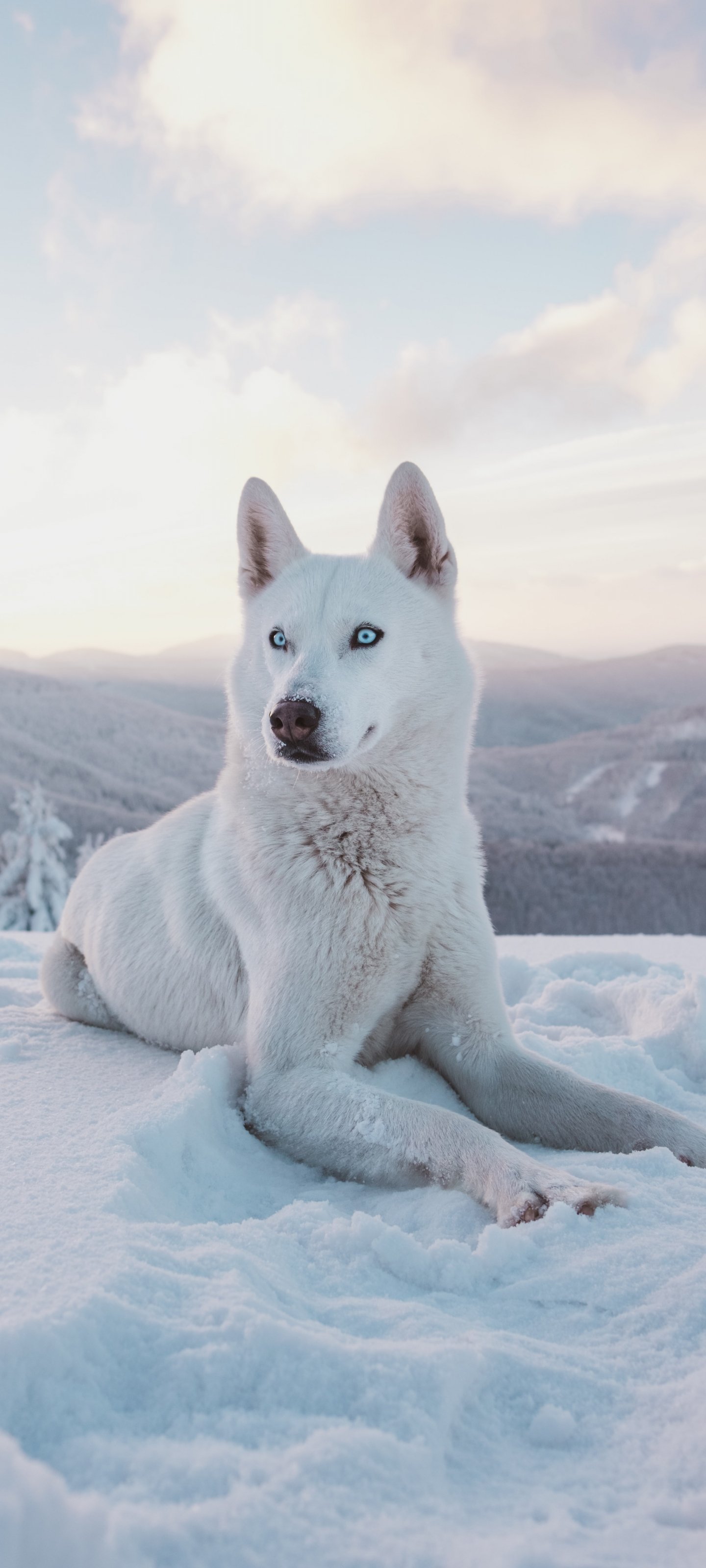 Обои: собака, снег, зима, горы - 1440x3200