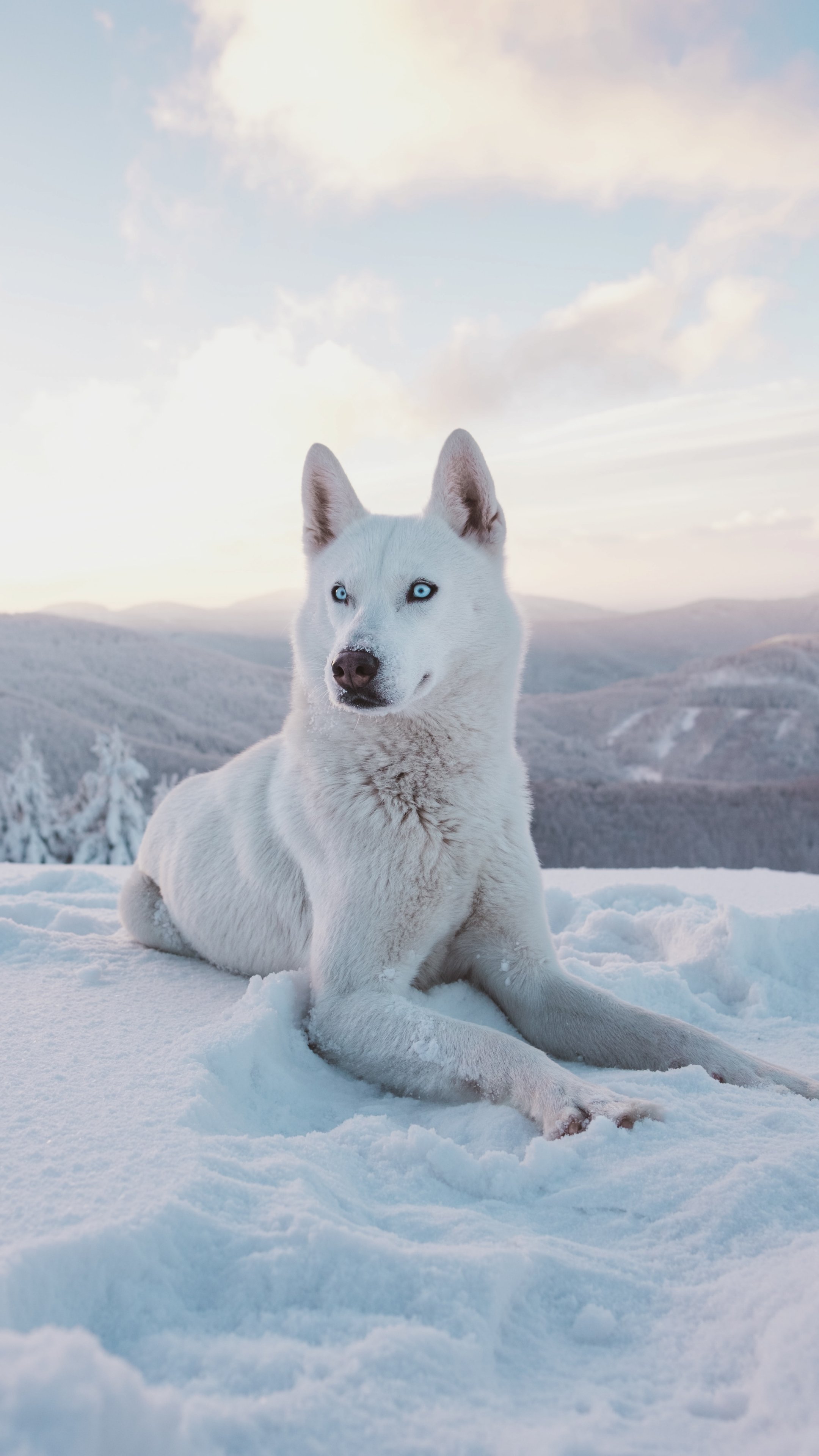 Обои: собака, снег, зима, горы - 2160x3840