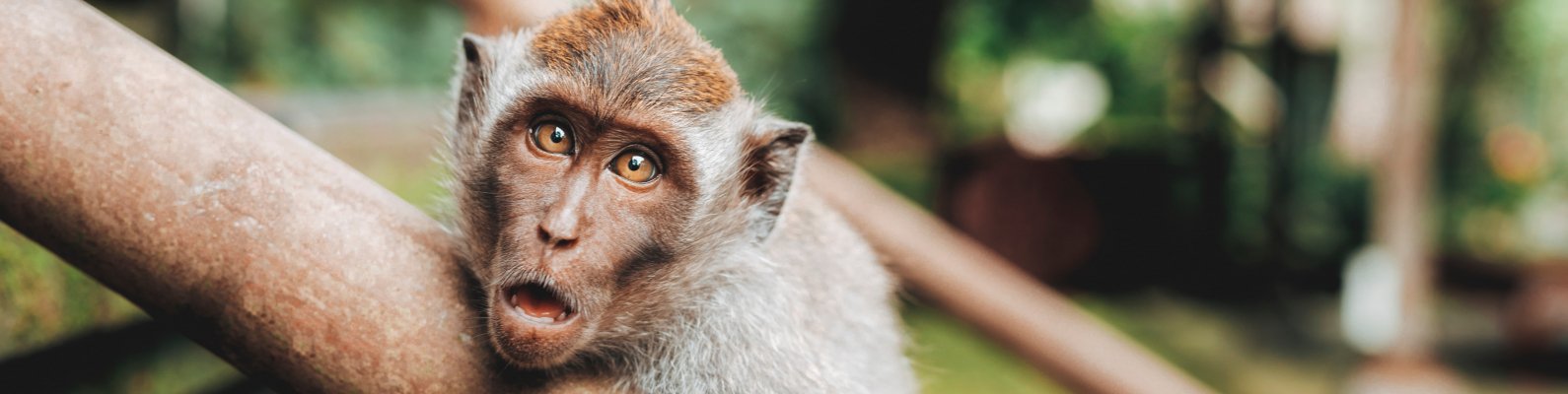 Обои: удивление, обезьяна, карие глаза - 1590x400