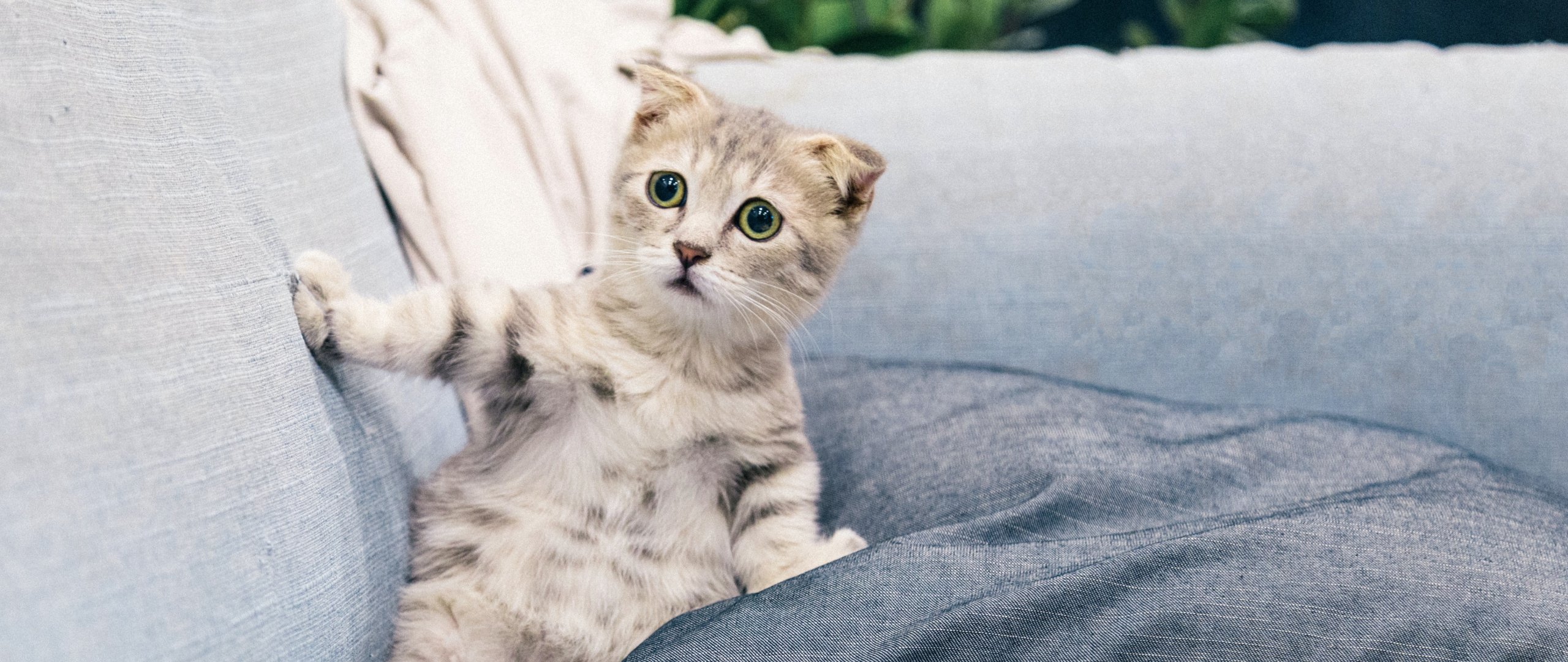 Обои: котенок, серый, домашний питомец - 2560x1080