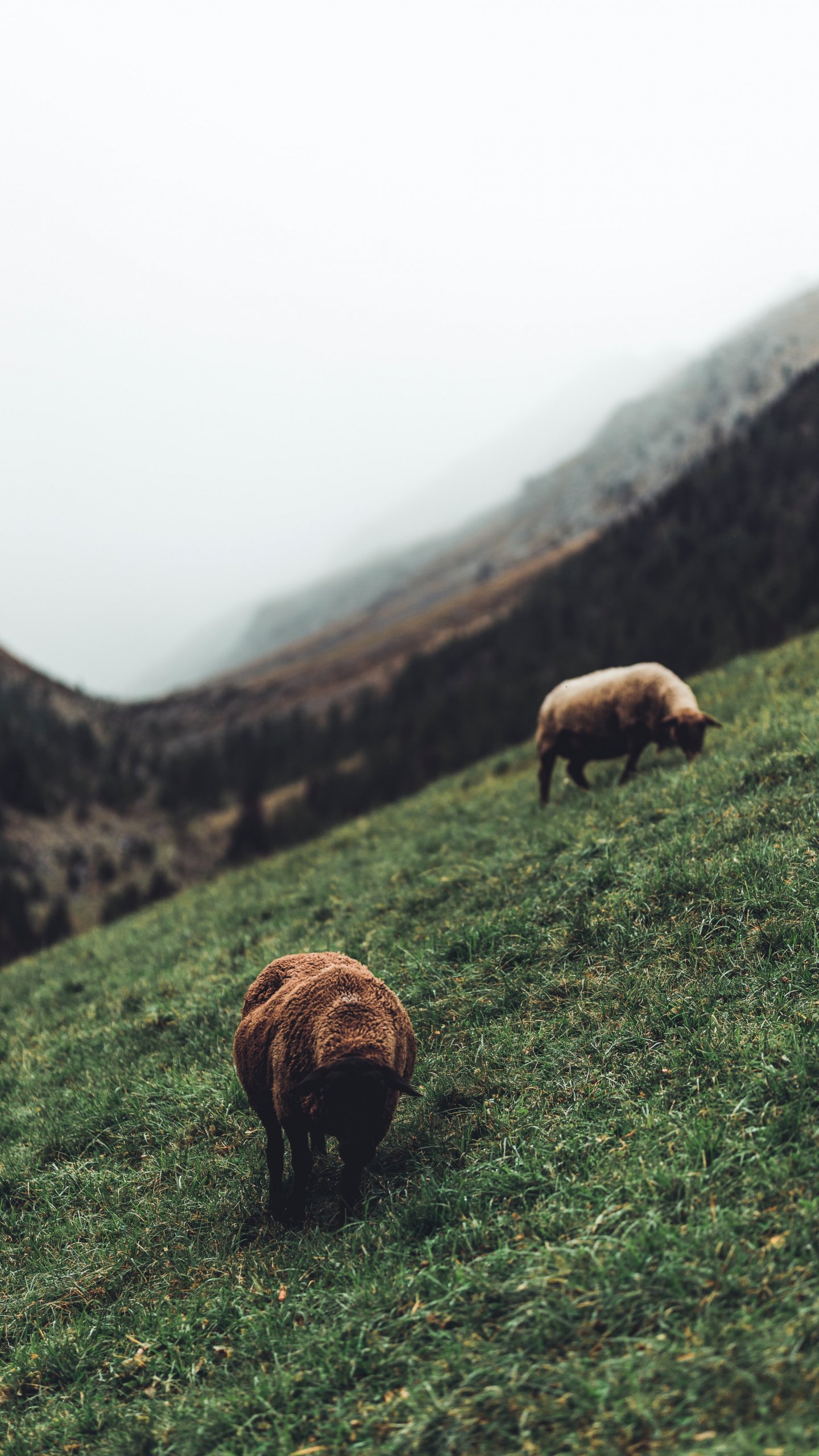 Обои: овцы, пастбище, склон - 1440x2560