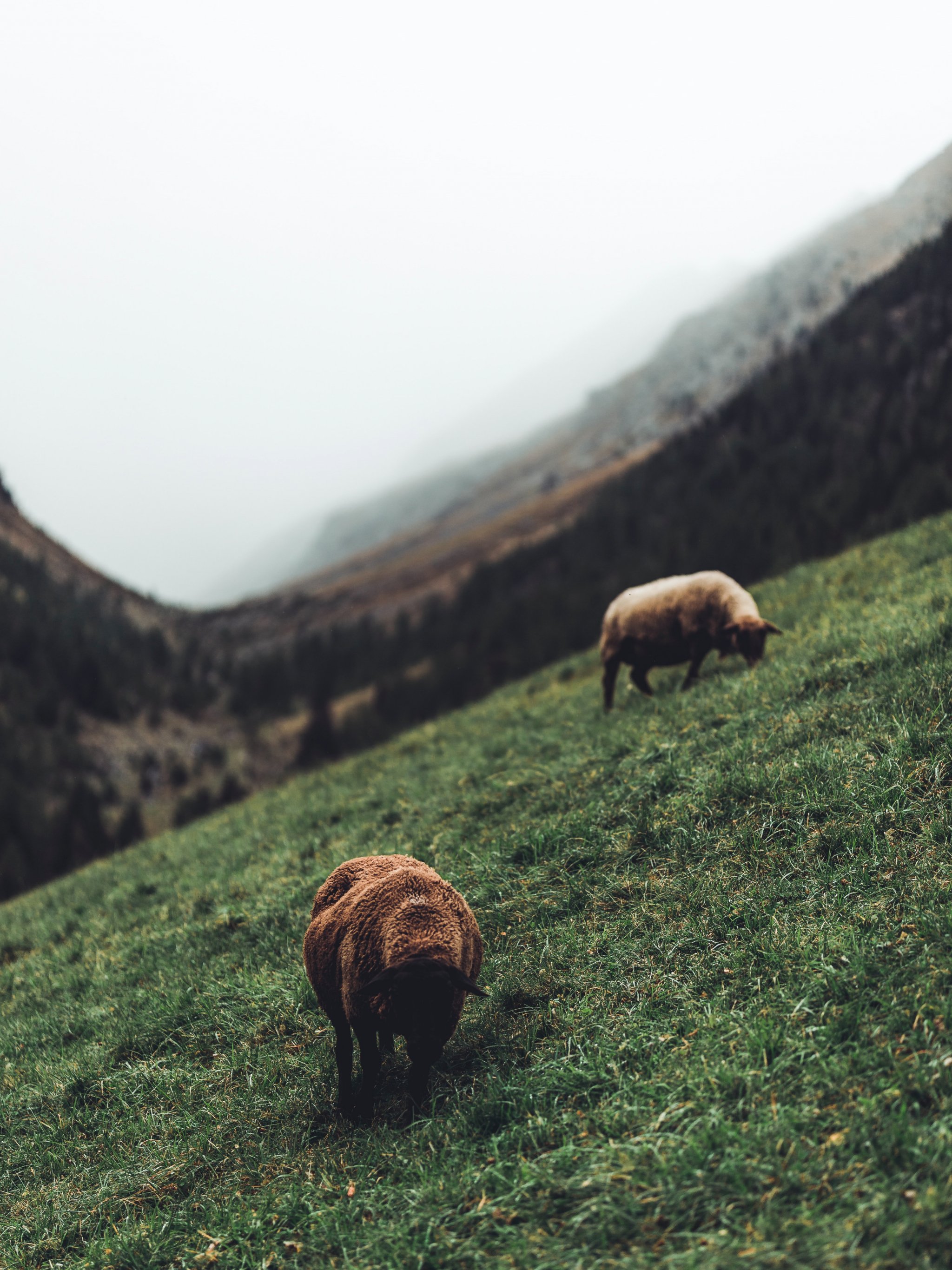 Обои: овцы, пастбище, склон - 2048x2732