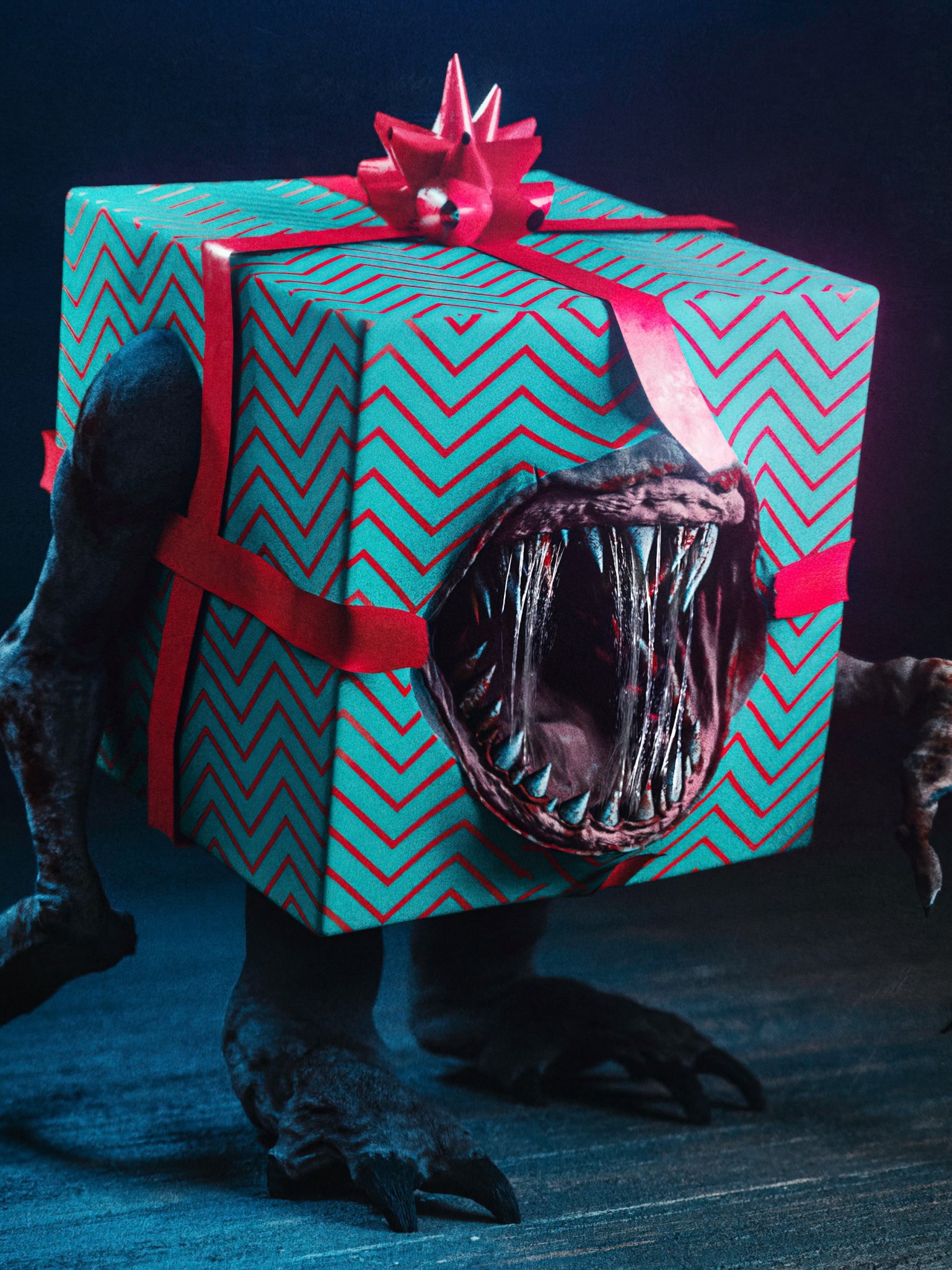 Обои: монстр, подарок, 3D моделирование - 1536x2048