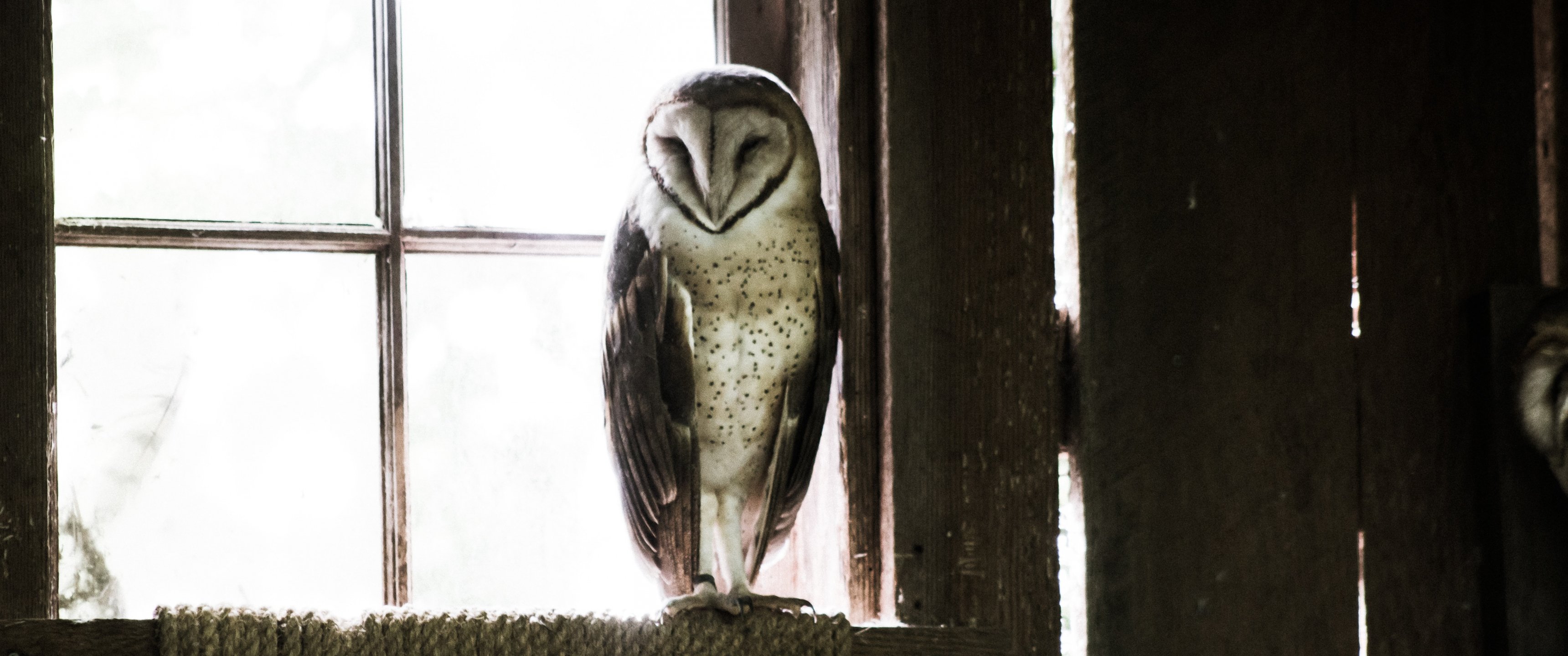Обои: сова, птица, окно - 3440x1440