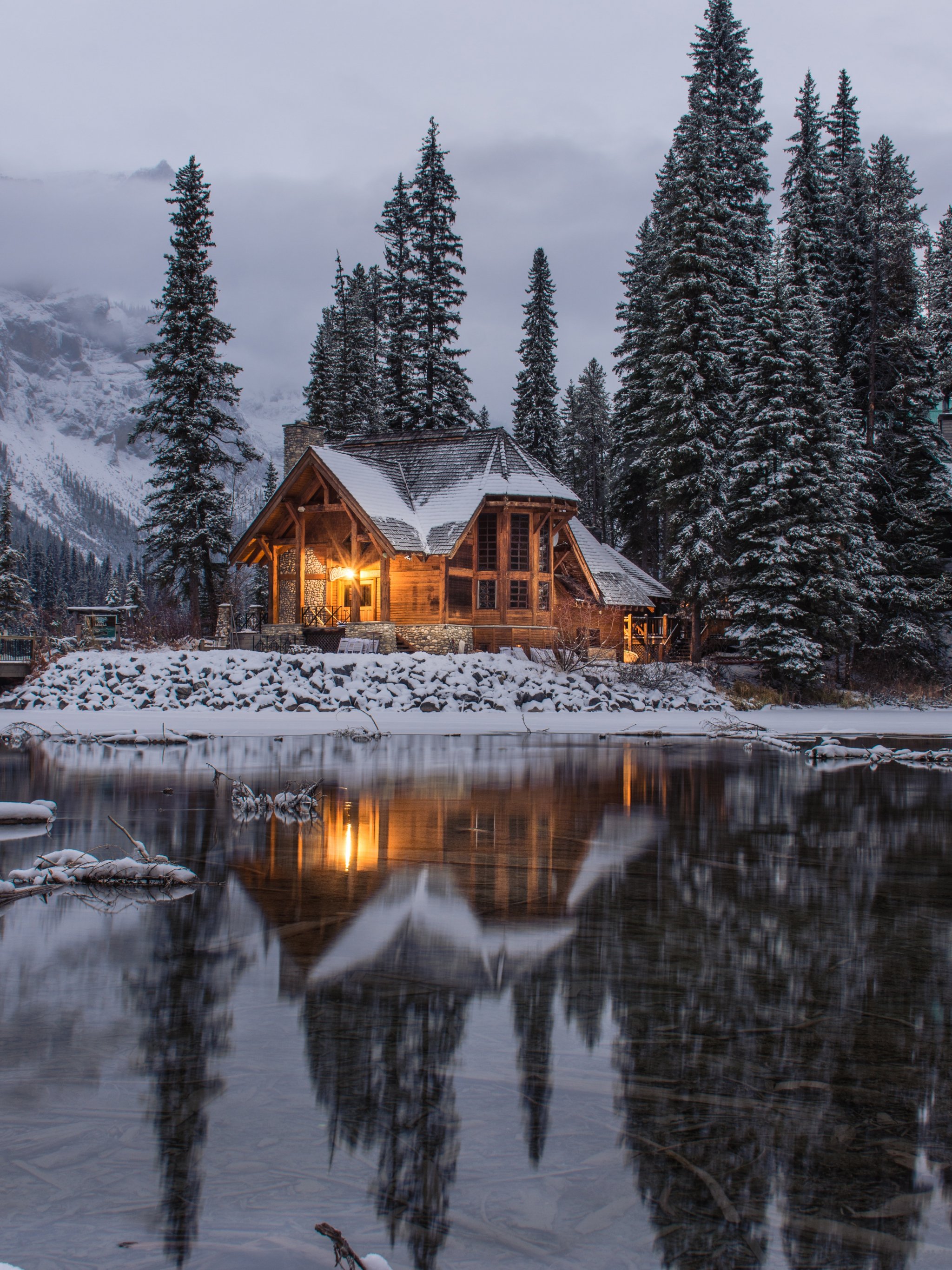 Обои: дом у озера, деревья - 2048x2732