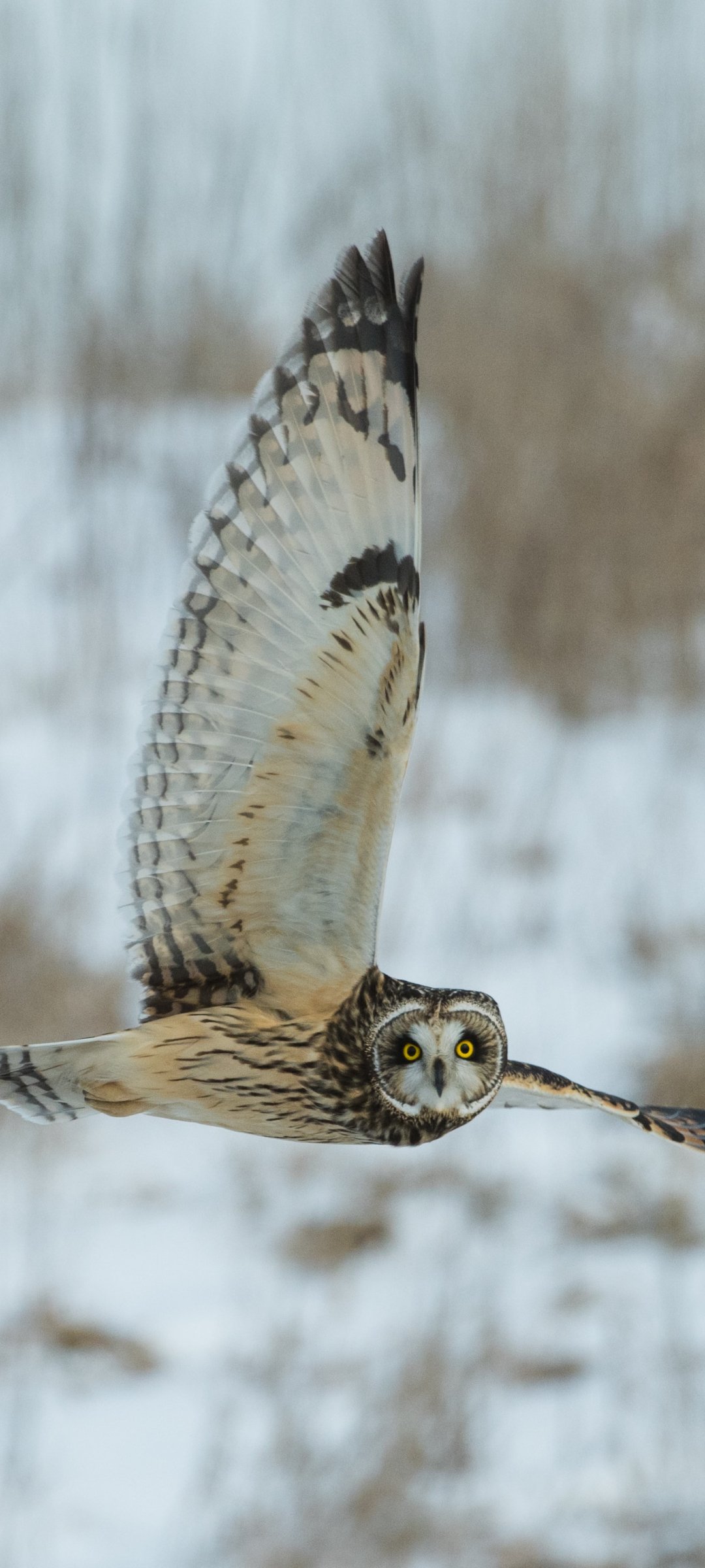 Обои: сова, желтый глаза, полет - 1080x2400
