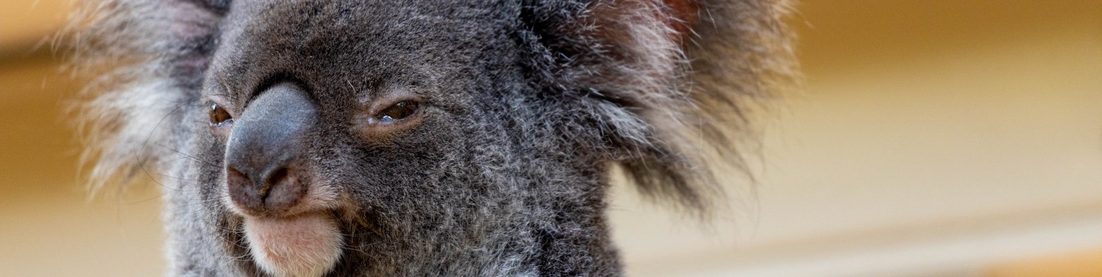Обои: коала, взгляд, серый - 1590x400