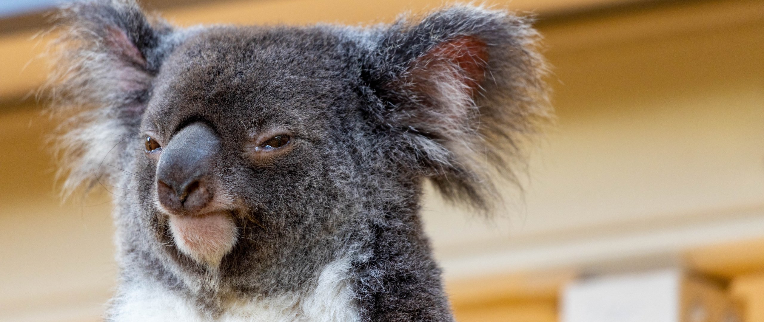 Обои: коала, взгляд, серый - 2560x1080
