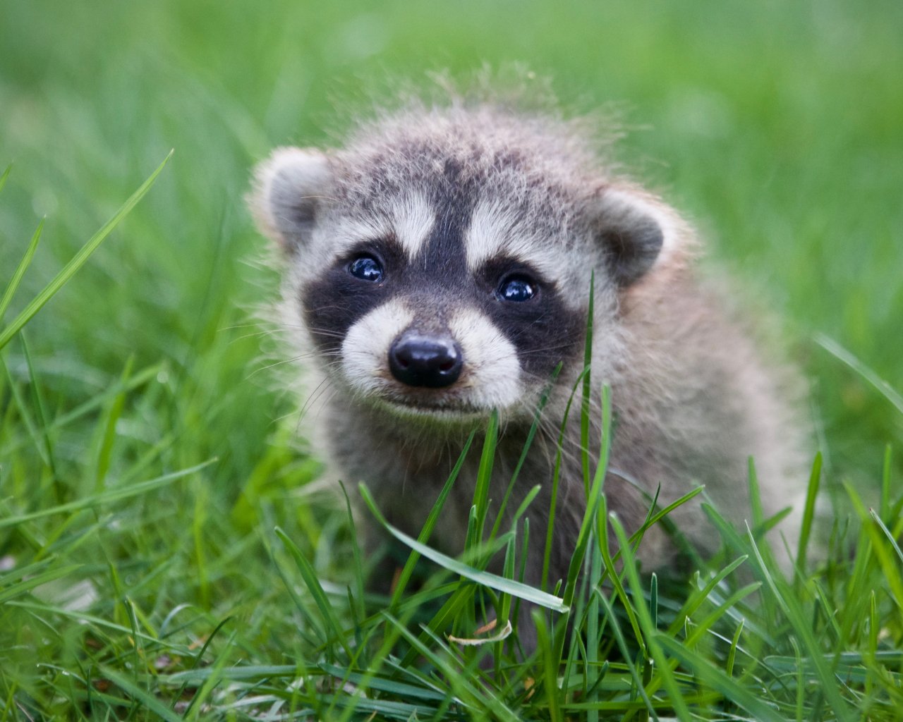 Обои: енот, детеныш, трава - 1280x1024