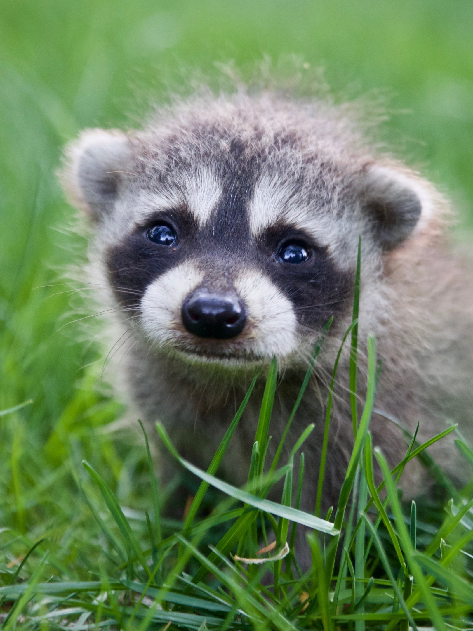 Обои: енот, детеныш, трава - 1620x2160