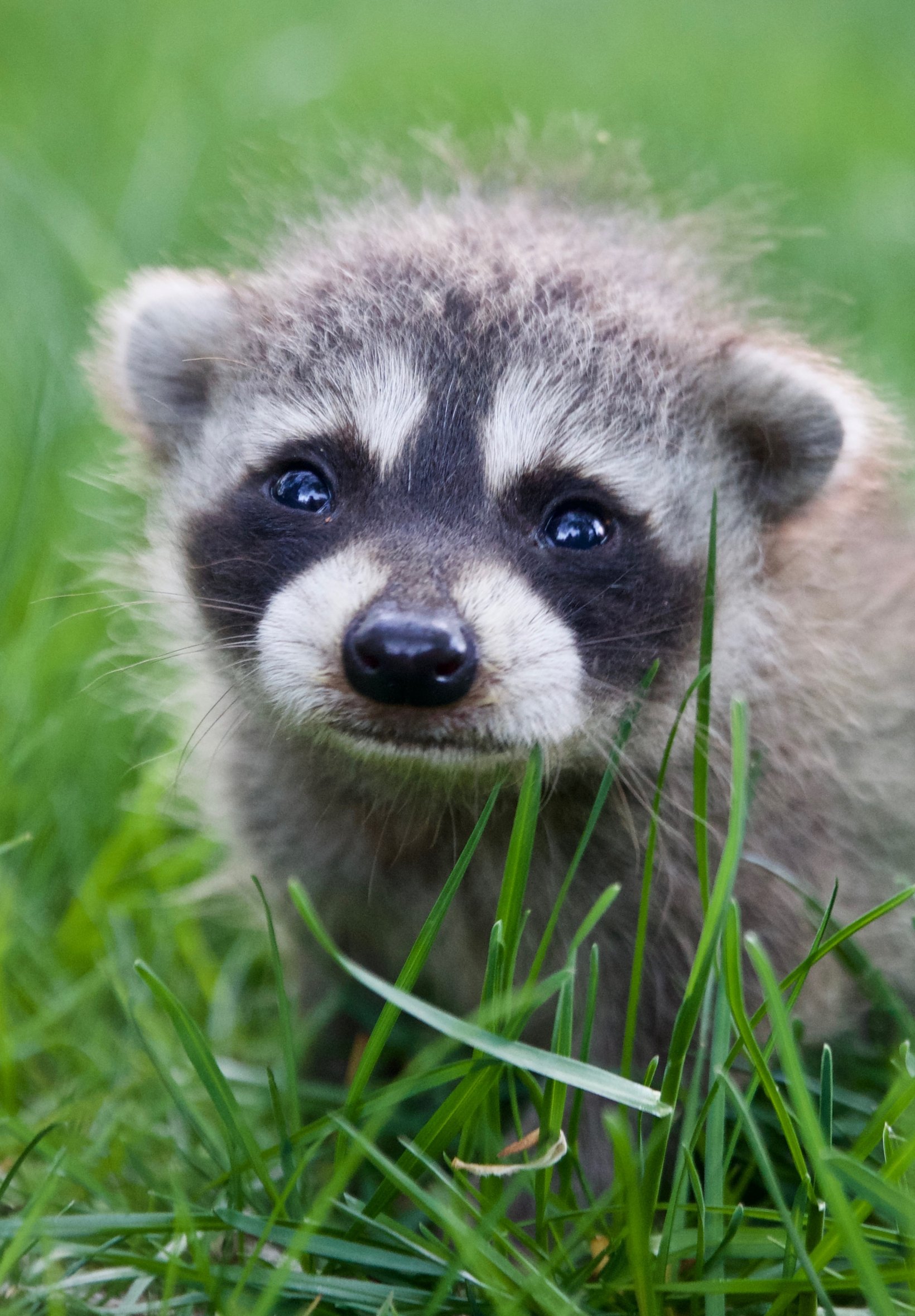 Обои: енот, детеныш, трава - 1640x2360