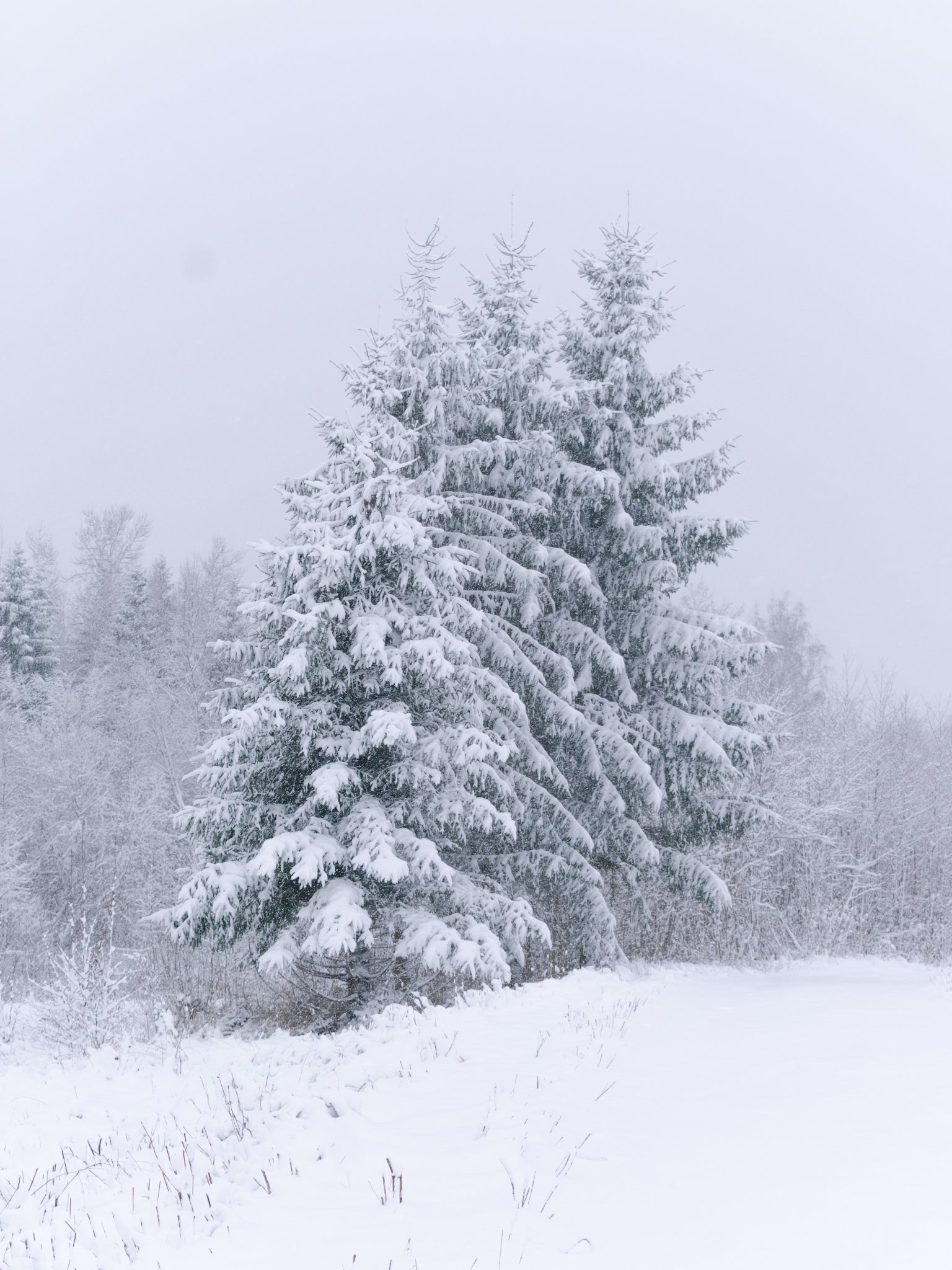 Обои: хвойные деревья, снег, зима - 1536x2048