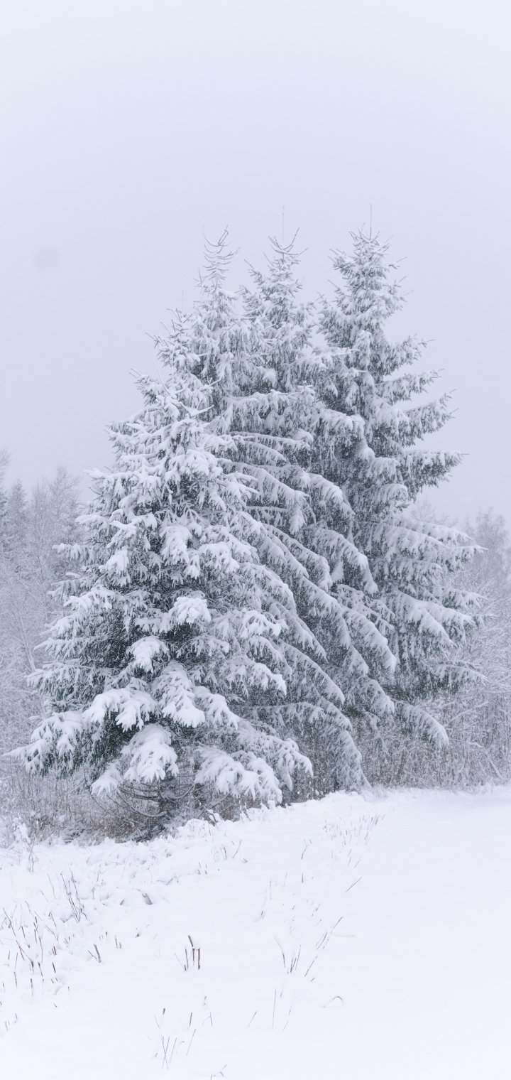 Обои: хвойные деревья, снег, зима - 720x1520