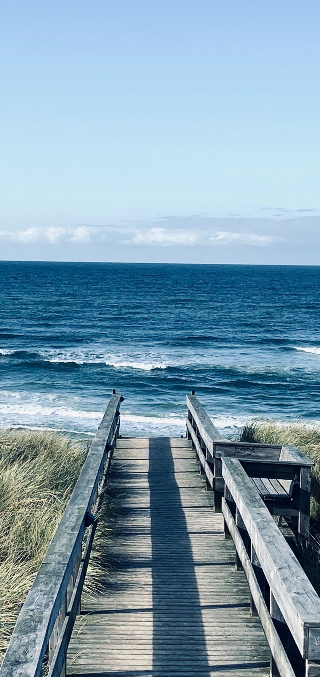 Обои: море, берег, пирс, трава - 1080x2280