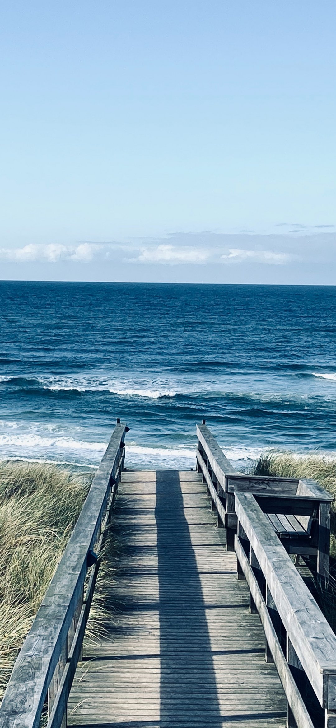 Обои: море, берег, пирс, трава - 1080x2340