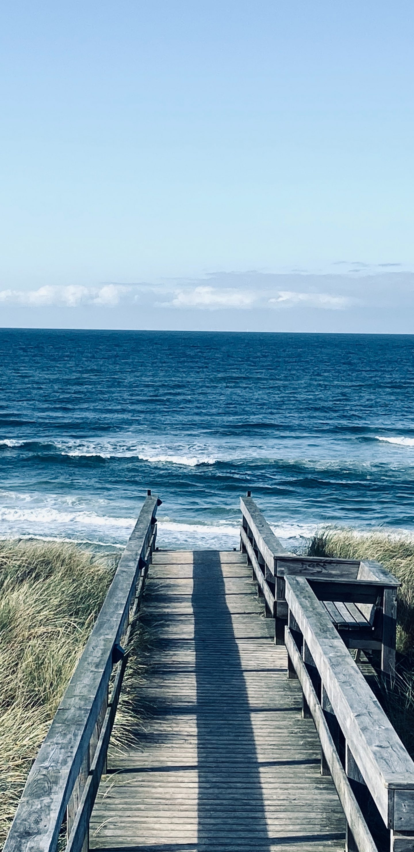 Обои: море, берег, пирс, трава - 1440x2960
