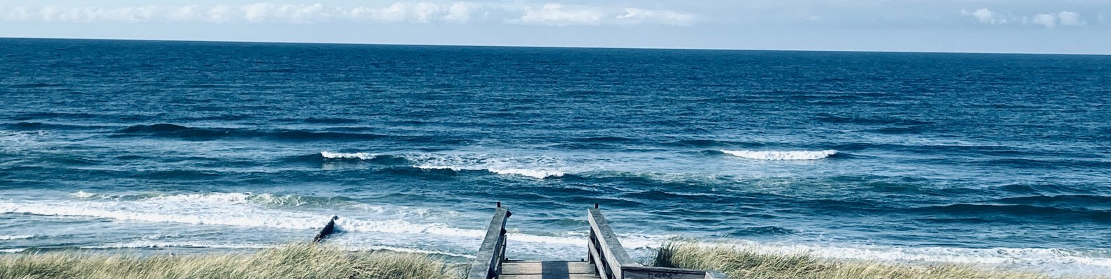 Обои: море, берег, пирс, трава - 1590x400