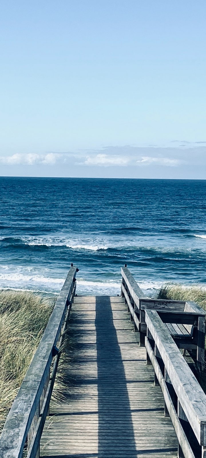 Обои: море, берег, пирс, трава - 720x1600