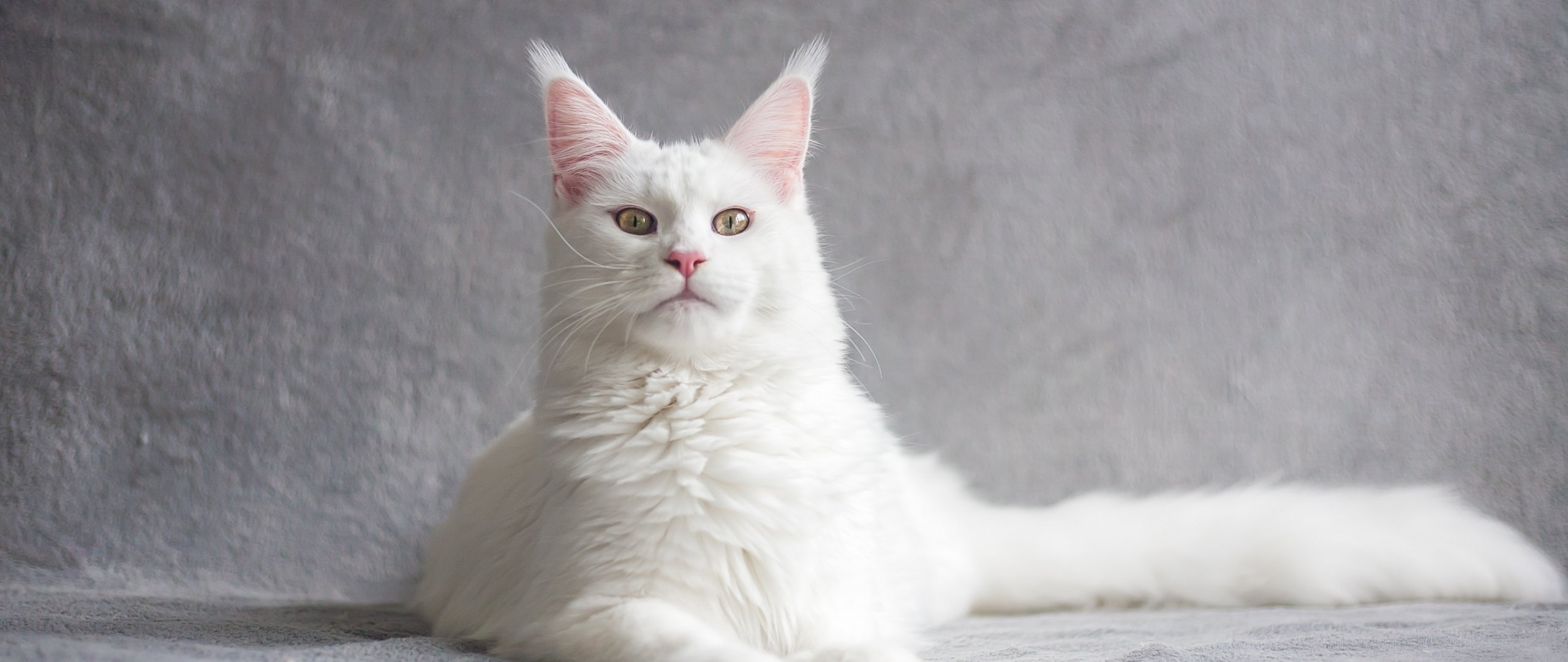 Обои: мейн-кун, кот, белый - 2560x1080