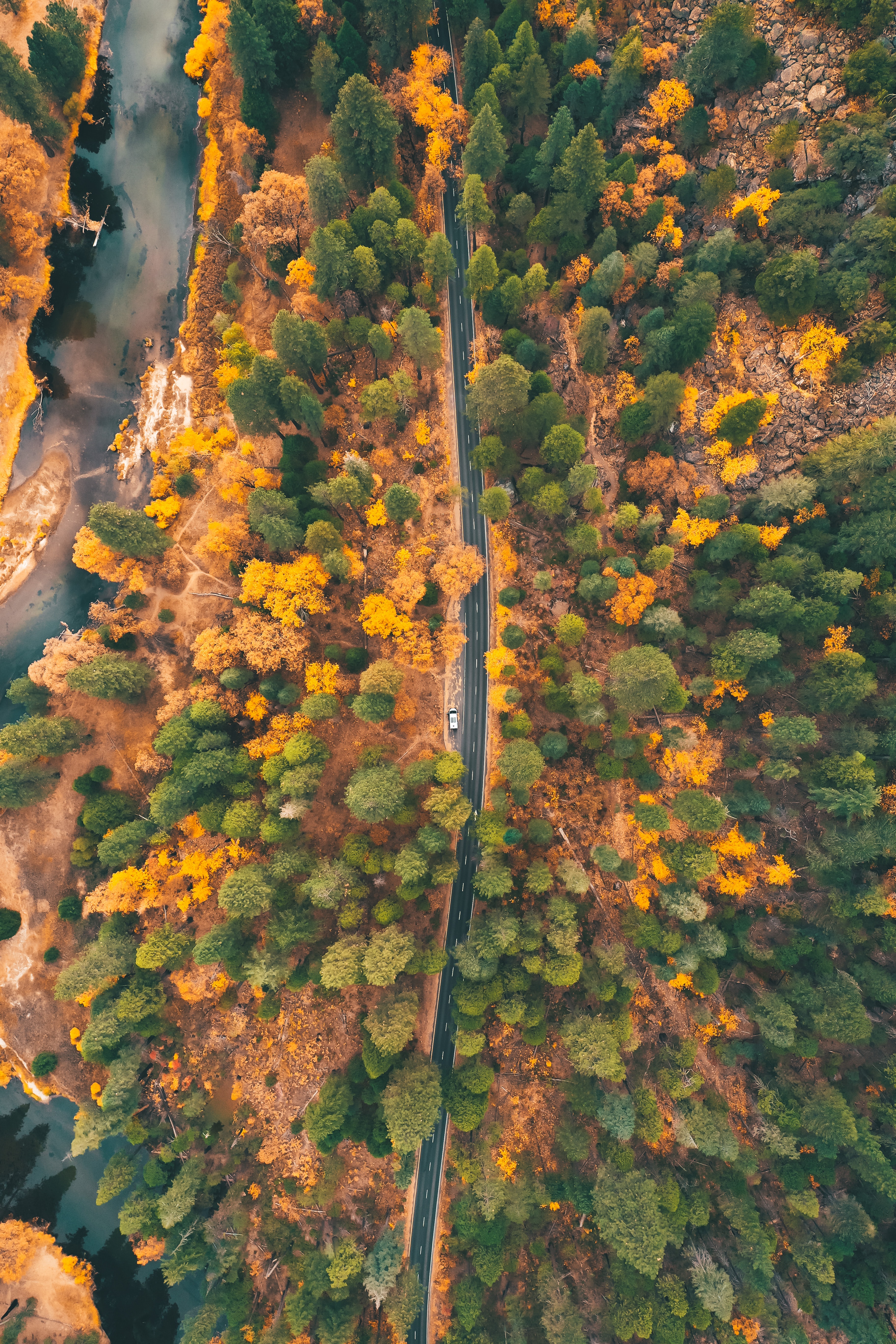Обои: вид сверху, лес, дорога - 3648x5472