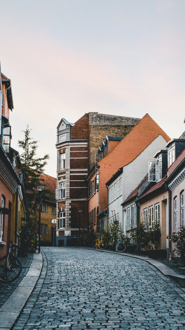 Обои: улица, дома, Оденсе, Дания - 750x1334