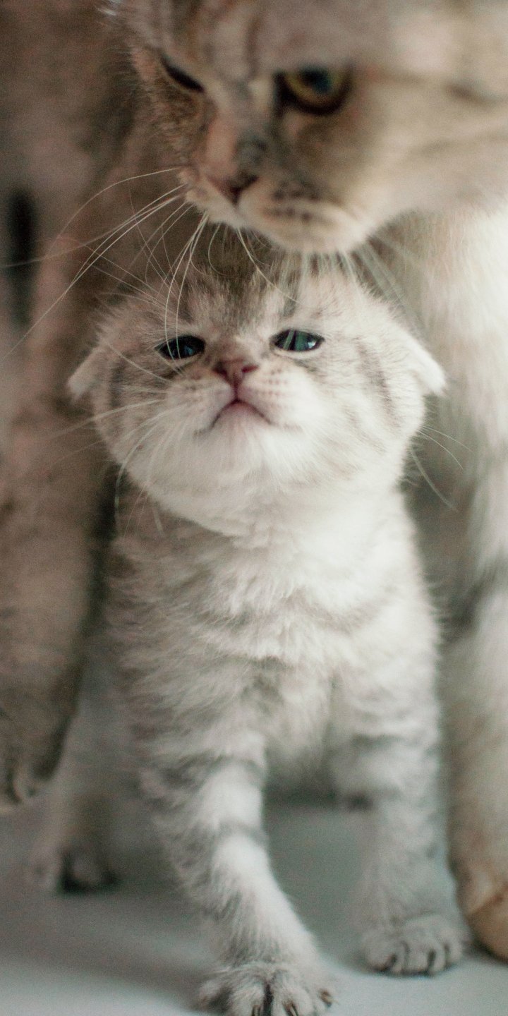 Обои: котенок, домашний питомец, материнство - 720x1440