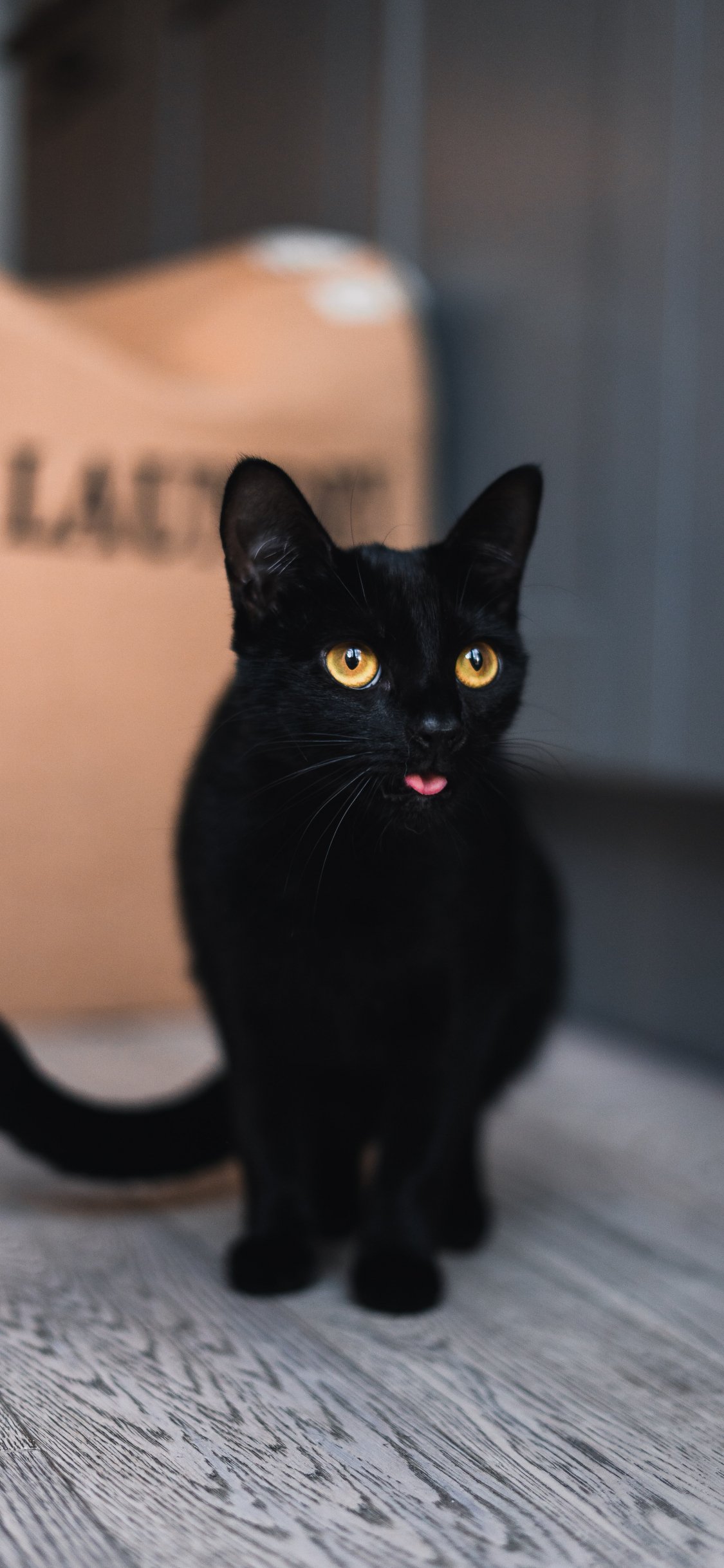 Обои: черный кот, желтые глаза - 1125x2436