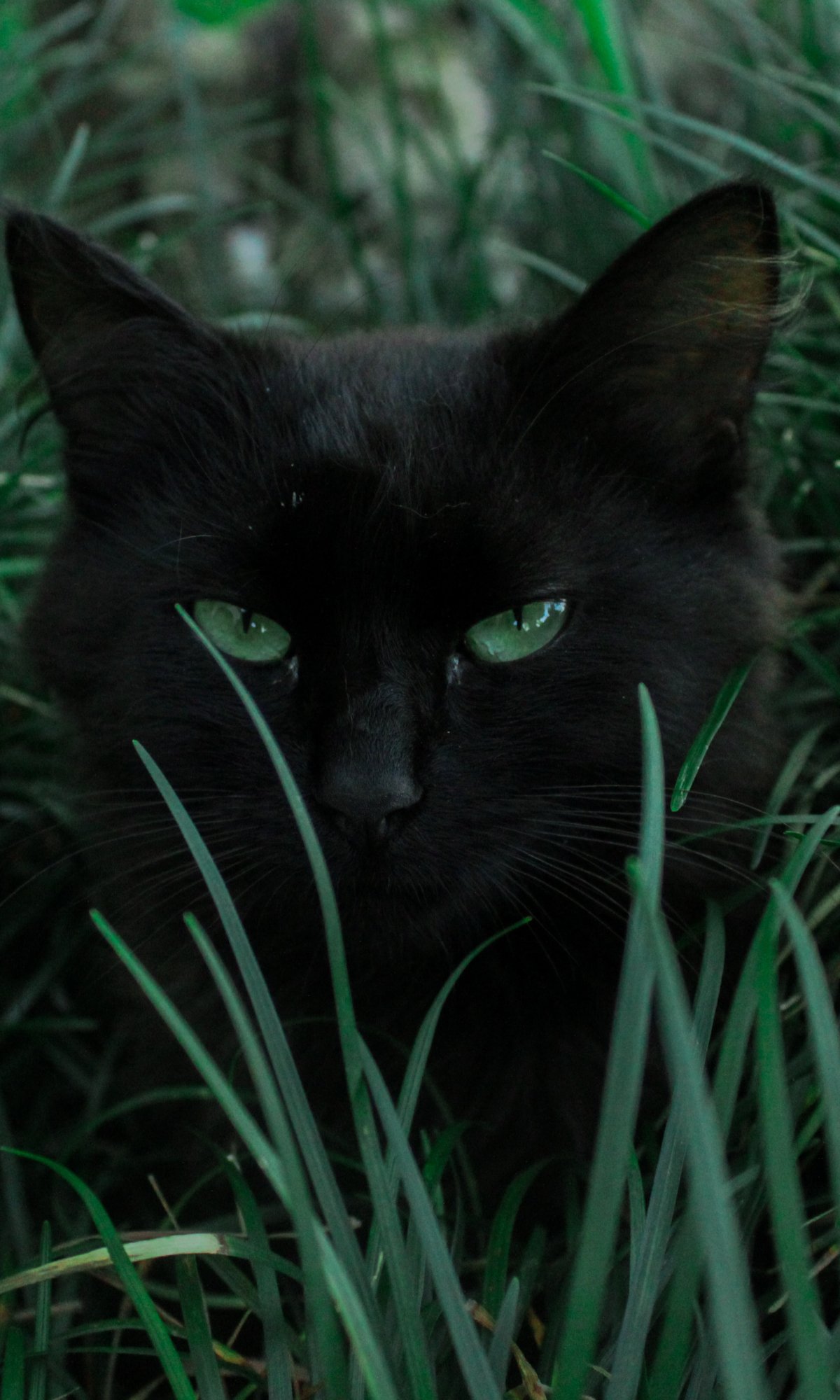Обои: черная кошка, зеленые глаза - 1200x2000