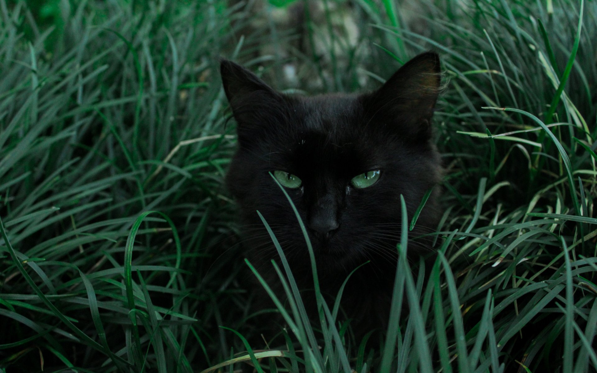 Обои: черная кошка, зеленые глаза - 1920x1200