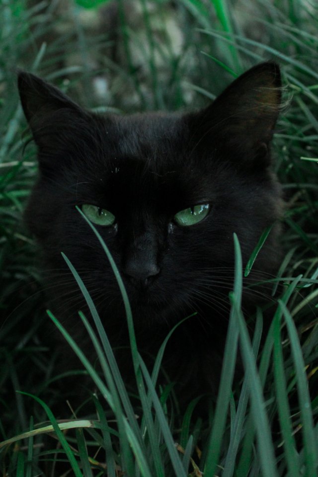 Обои: черная кошка, зеленые глаза - 640x960