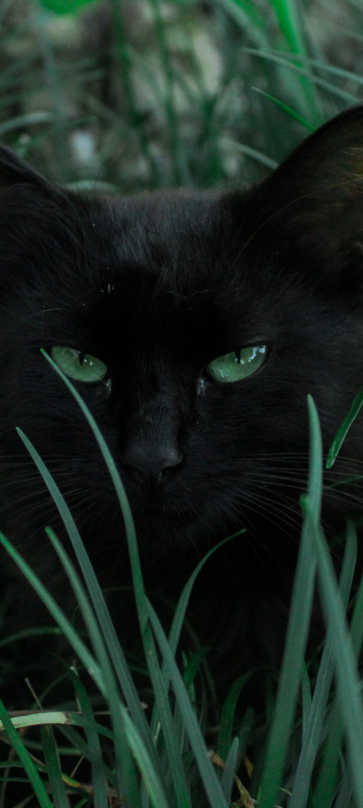Обои: черная кошка, зеленые глаза - 720x1600