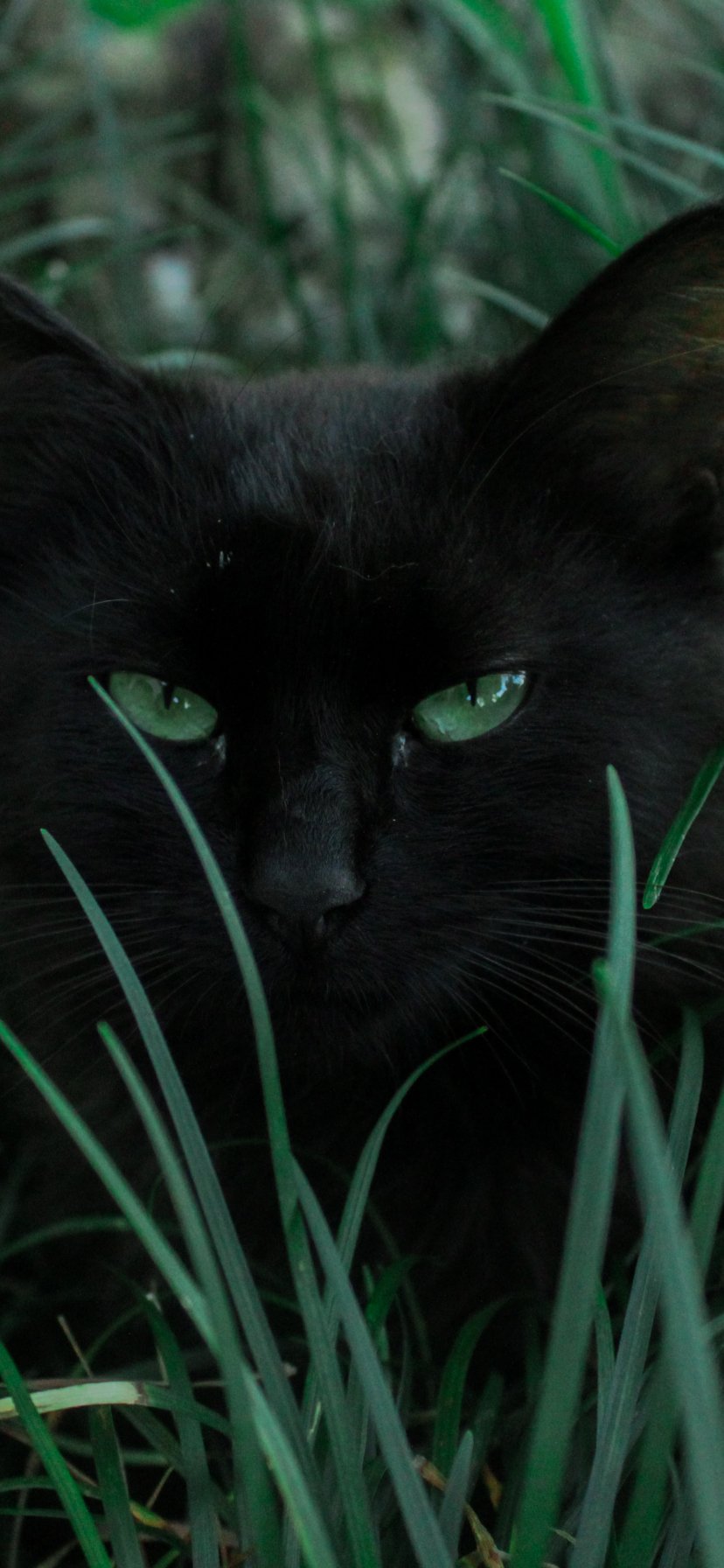 Обои: черная кошка, зеленые глаза - 828x1792