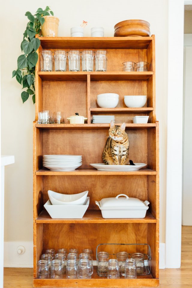 Обои: шкаф, кот, посуда - 640x960