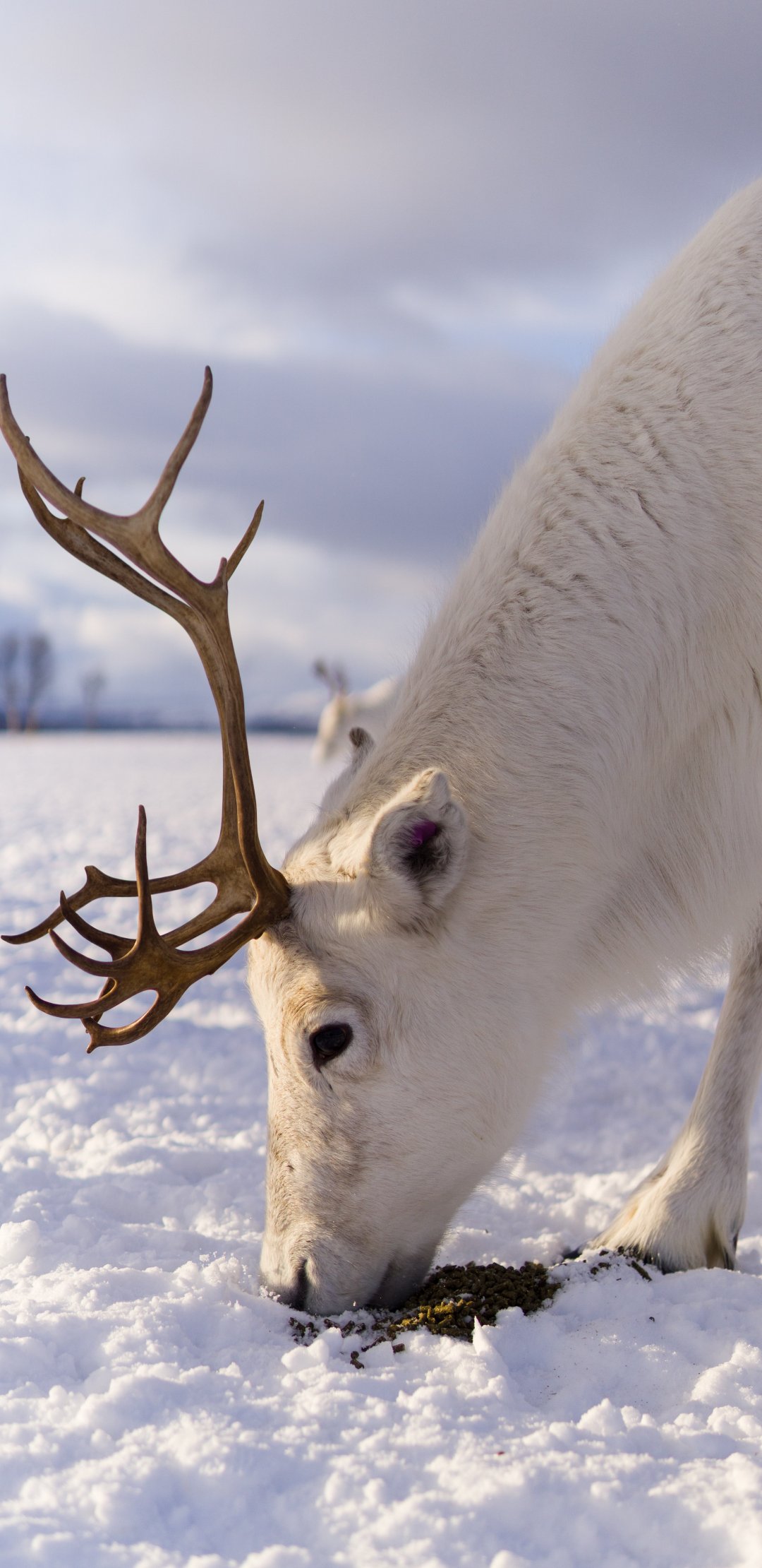 Обои: северный олень, снег, зима - 1080x2220