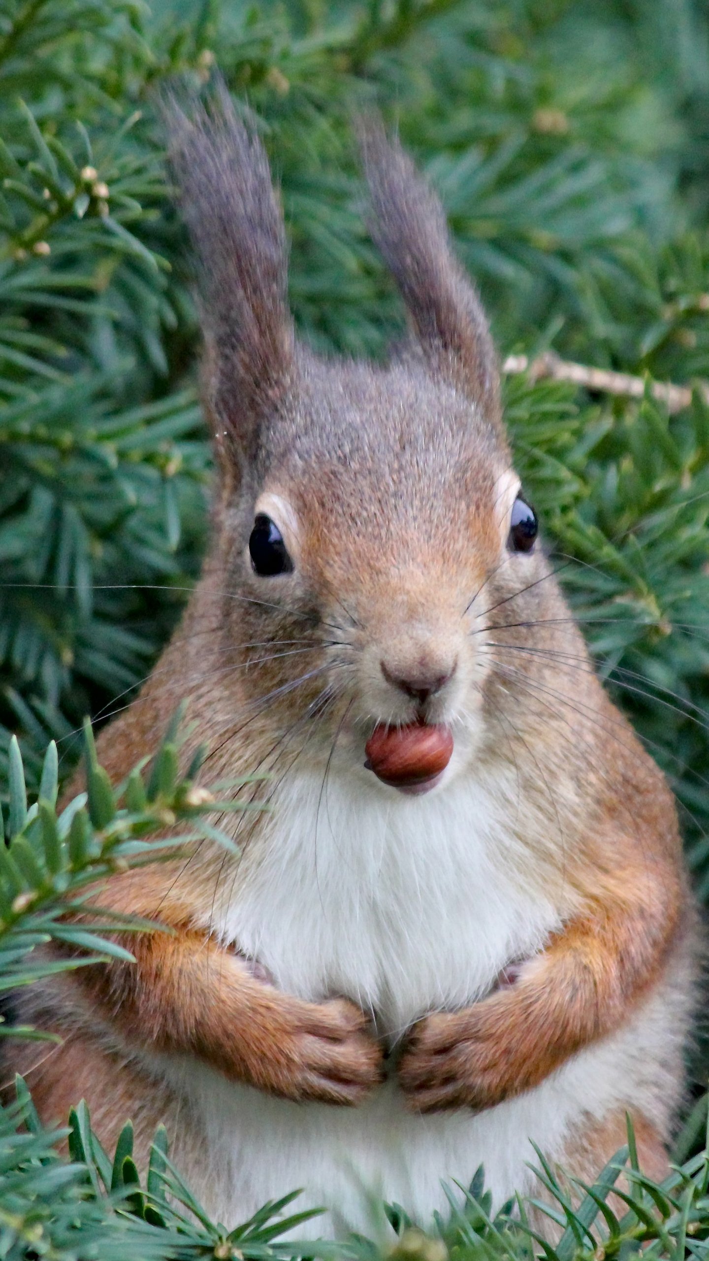 Обои: белка, взгляд, перекус - 1440x2560